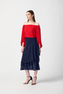Joseph Ribkoff Midnight Blue Layered Chiffon Skirt Style 241232