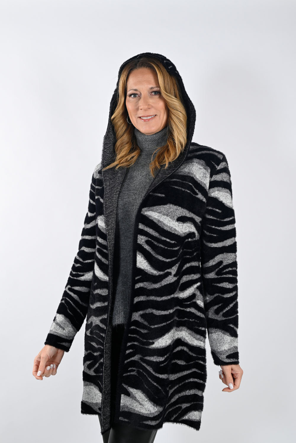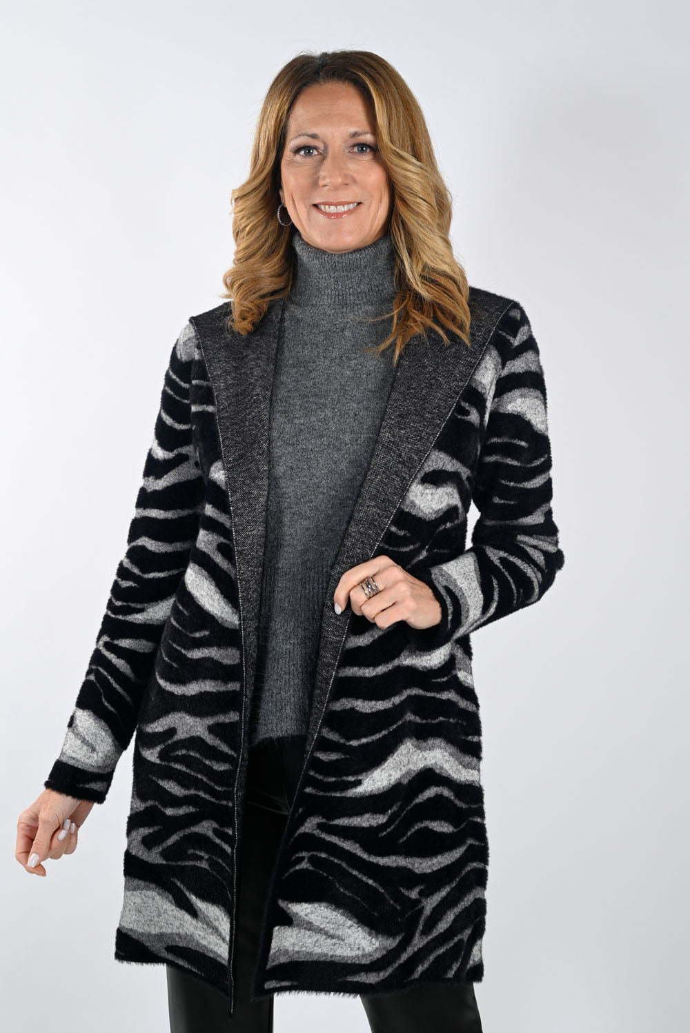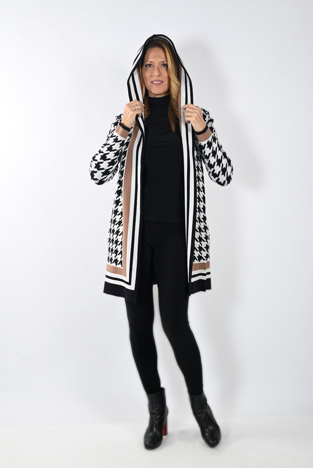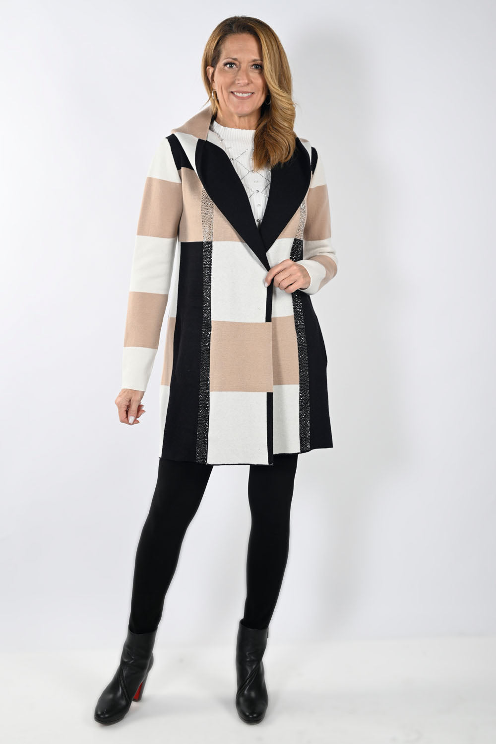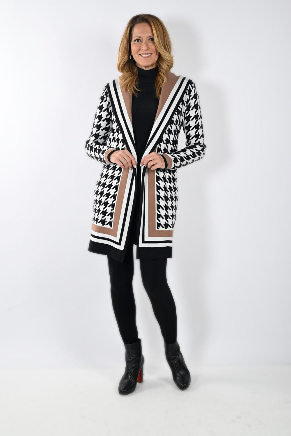 Joseph Ribkoff Champagne/Black Abstract Print Long Cardigan Style 253956 29% off