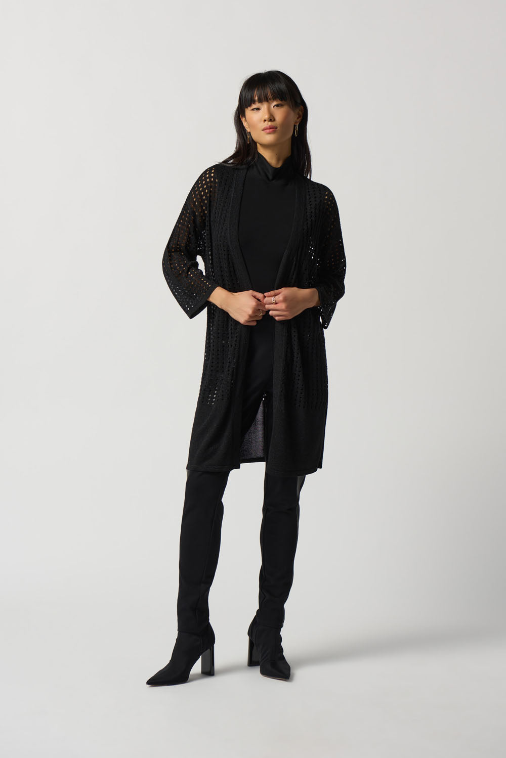 Joseph Ribkoff Black Sweater Knit Open-Front Cover Up Style 253990 29% off