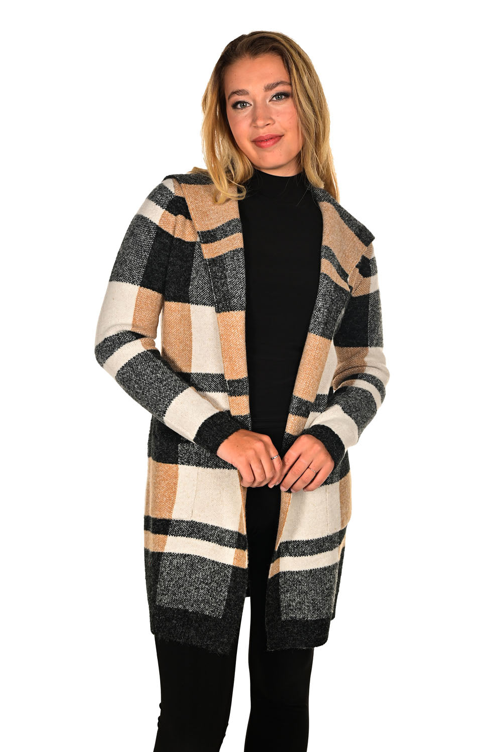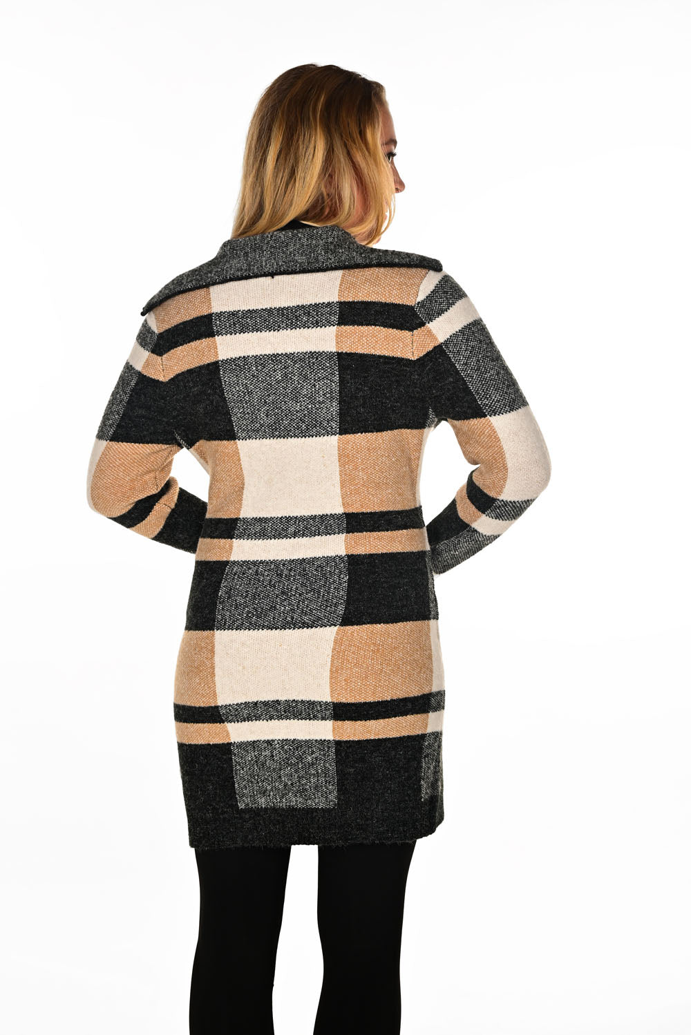 Joseph Ribkoff Champagne/Black Plaid Poncho Style 253903 29% off