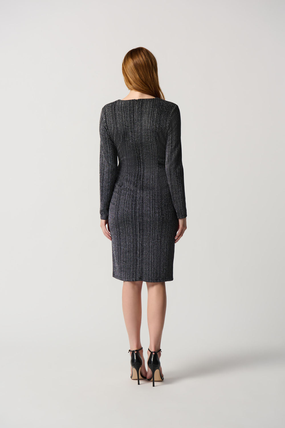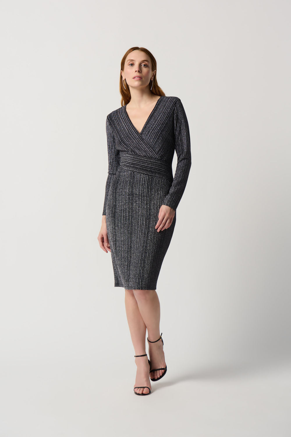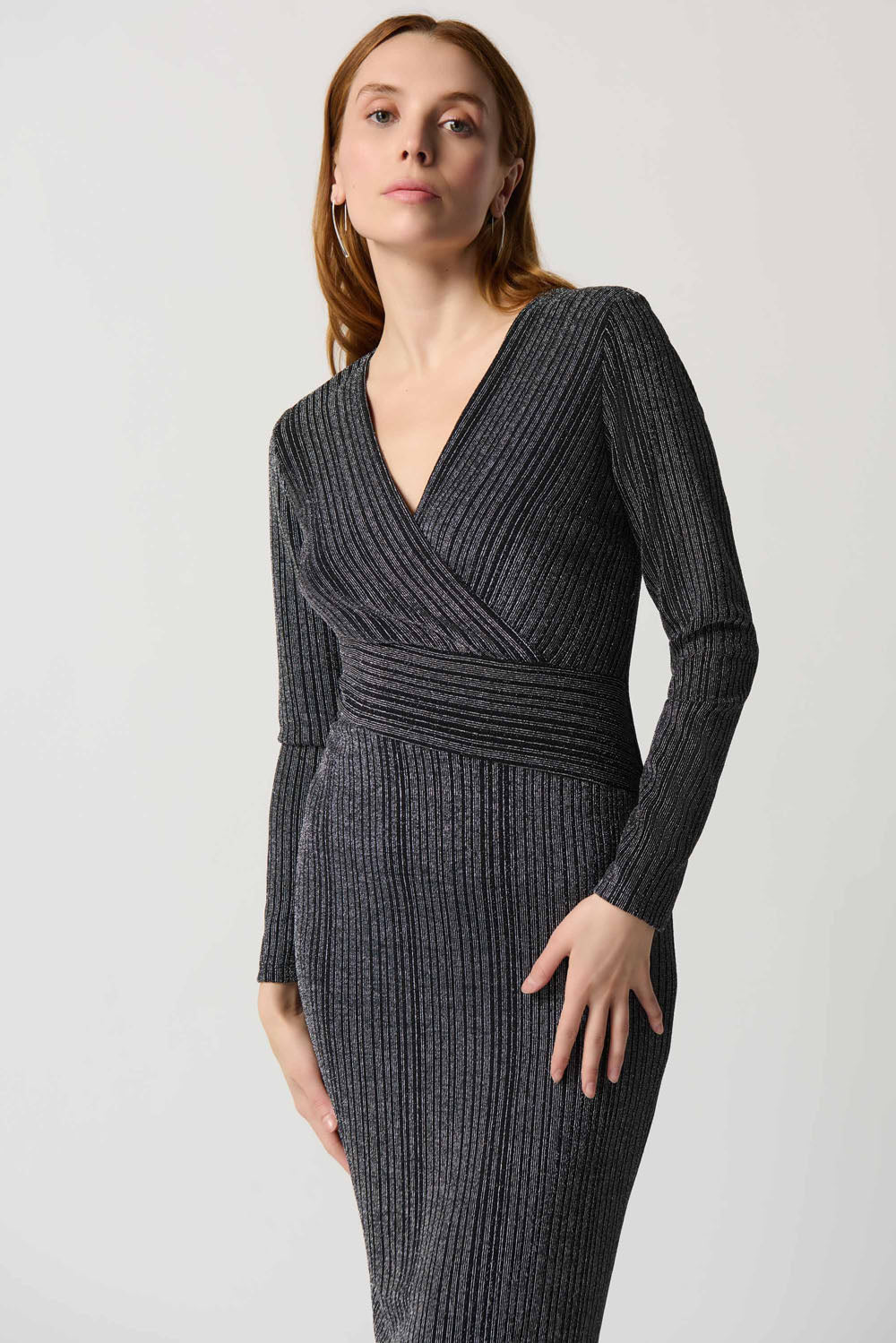 Joseph Ribkoff Black/Silver Wrap Dress With Stripe Print Style 234080