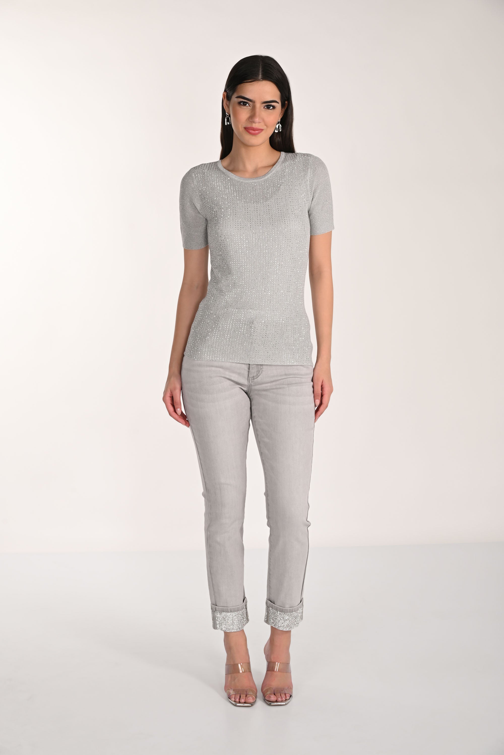 Frank Lyman Light Grey Slim-Fit Jeans with Embellished Cuff Style 266594