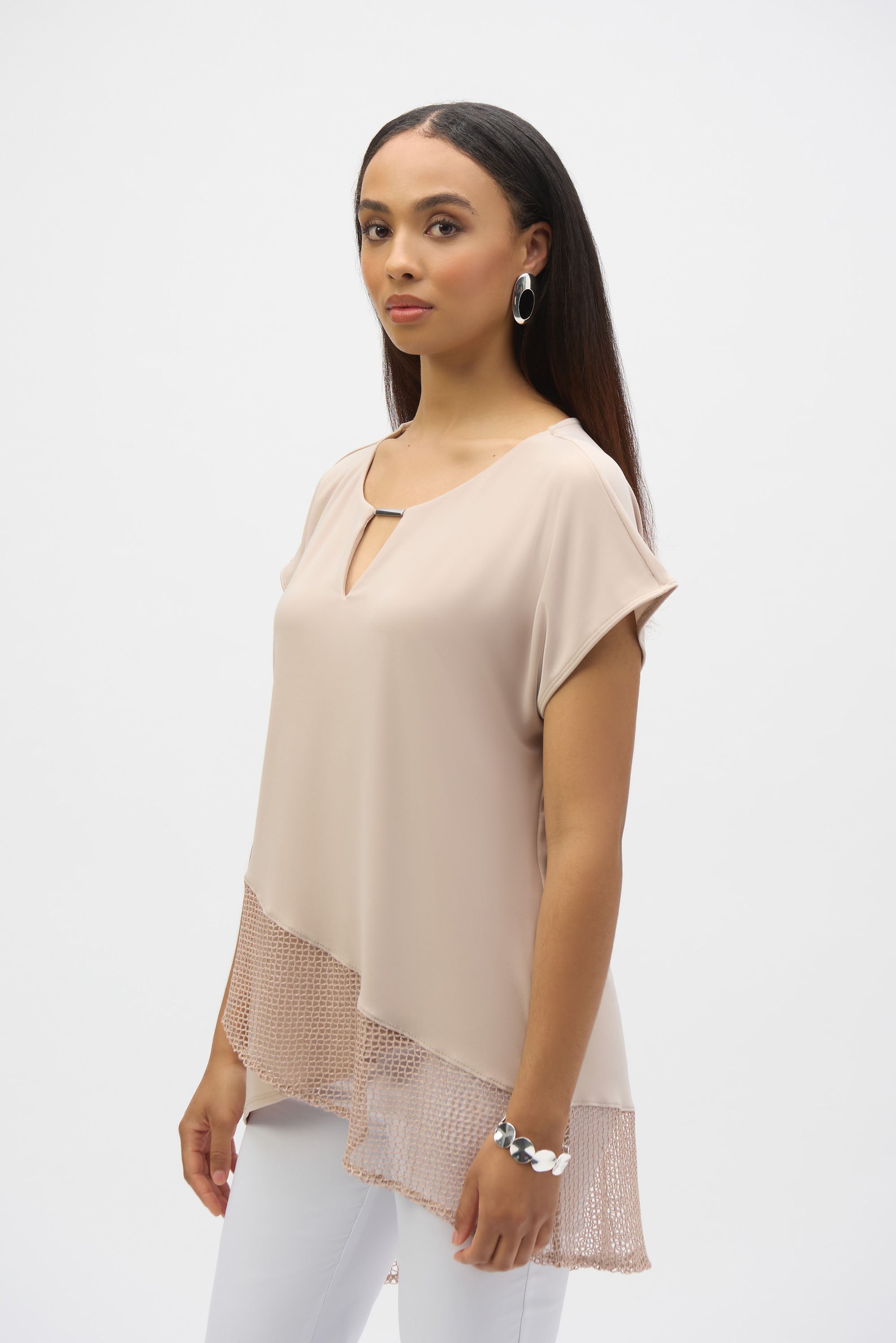 Joseph Ribkoff Asymmetrical Top with Foiled Mesh Bottom Style 252172