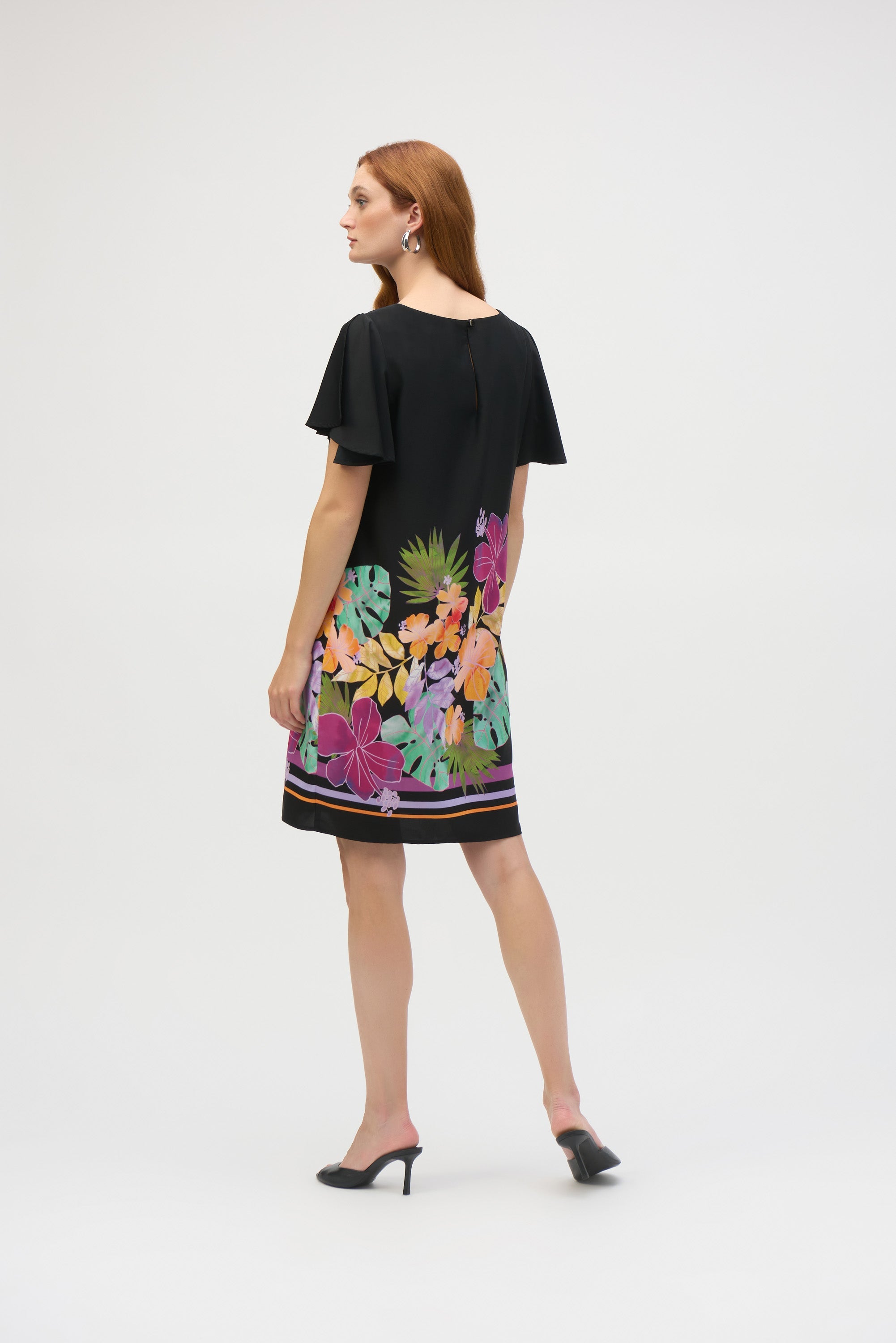 Joseph Ribkoff Black/Multi Woven Tropical Print Straight Dress Style 252151