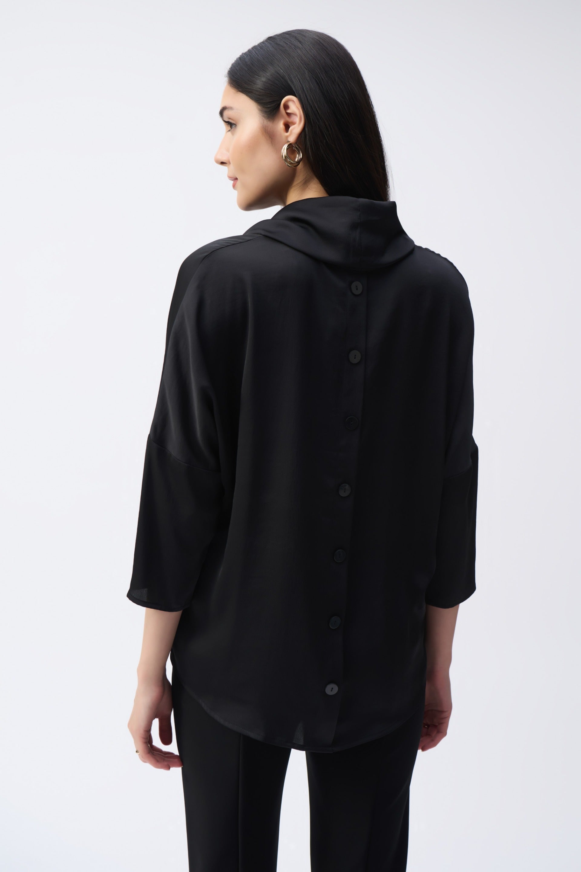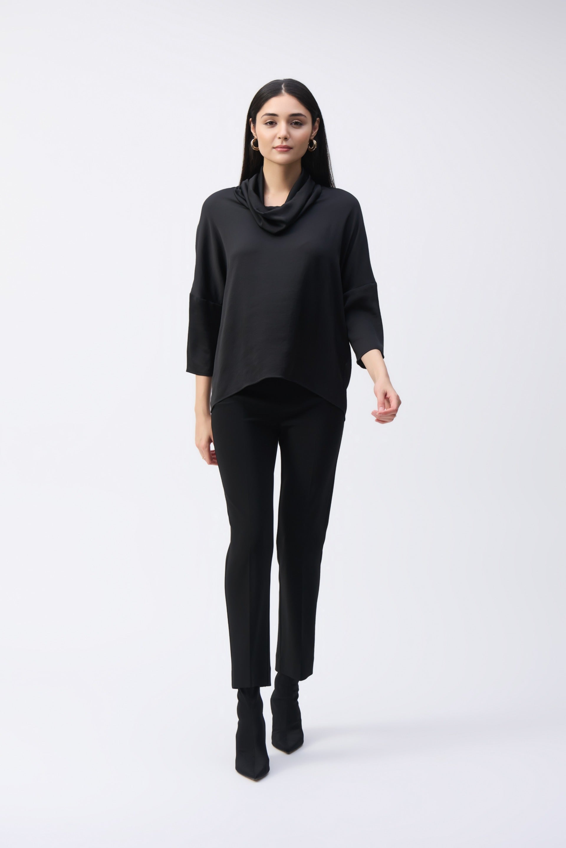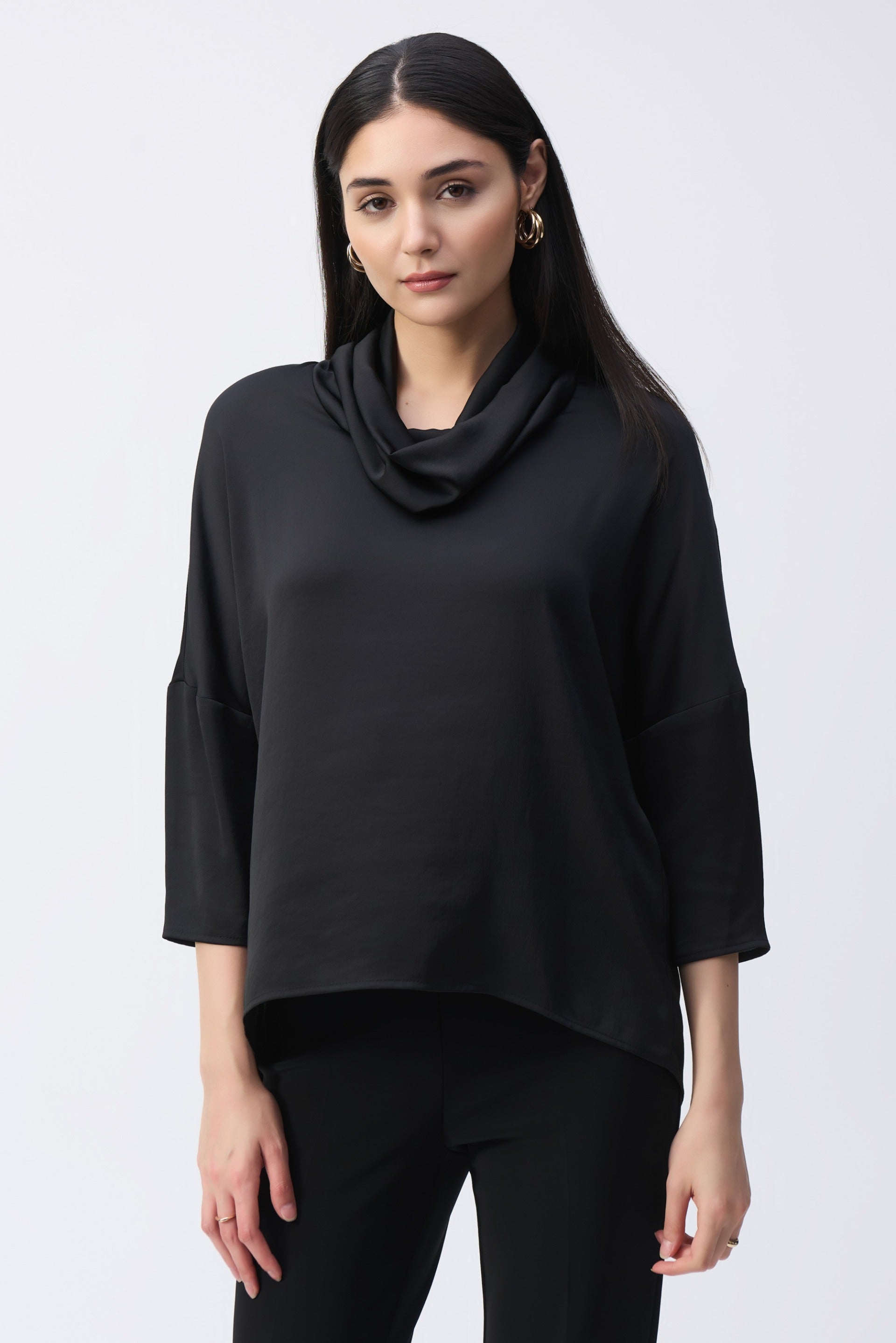 Joseph Ribkoff Black Satin Cowl Collar Top Style 243189
