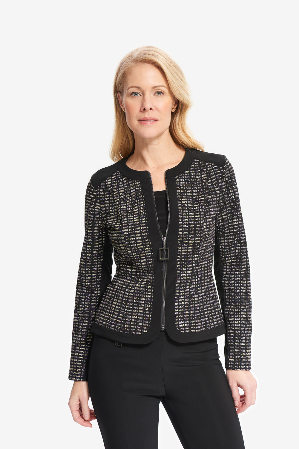 Joseph Ribkoff Black/Silver Zip Up Blazer Style 214099