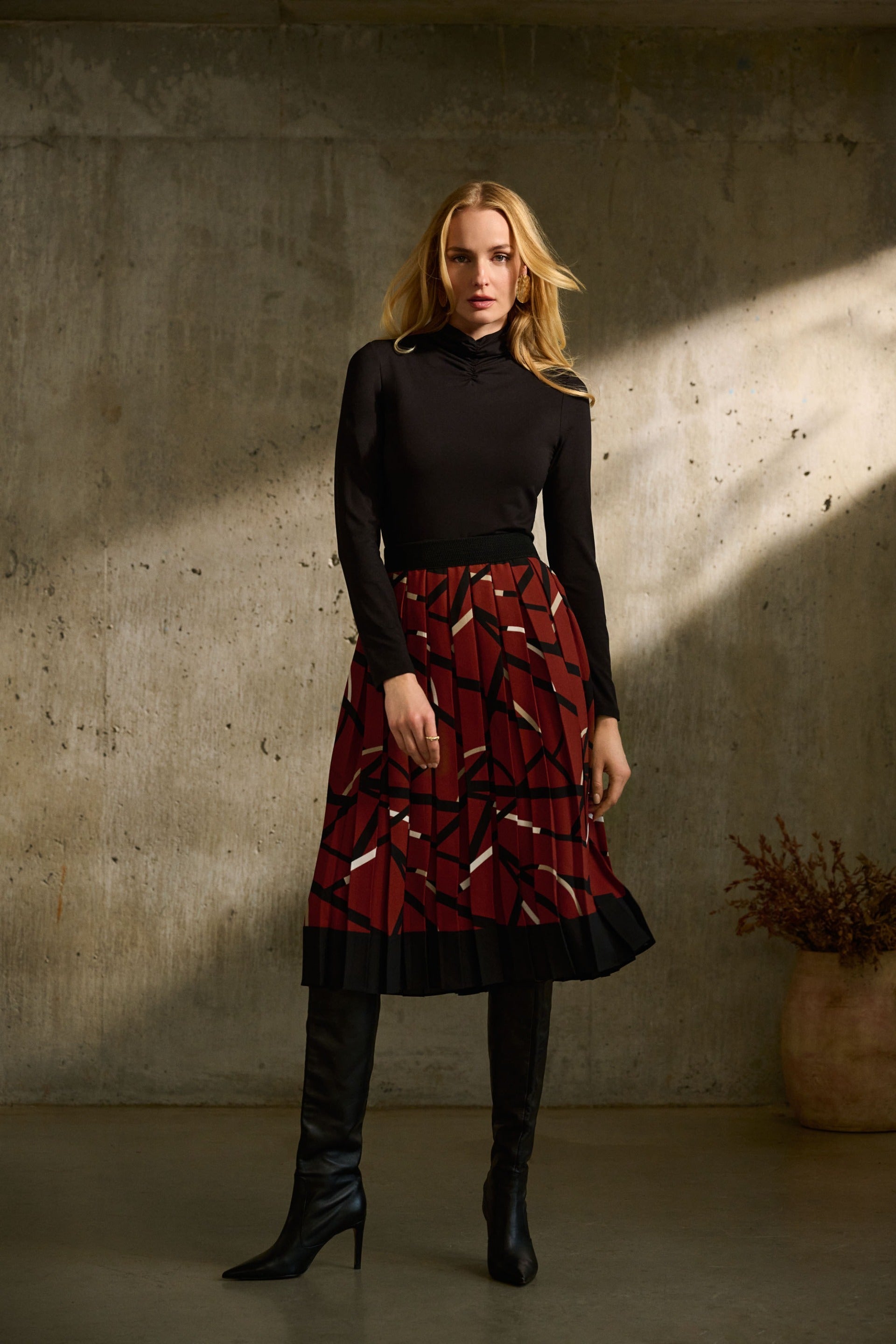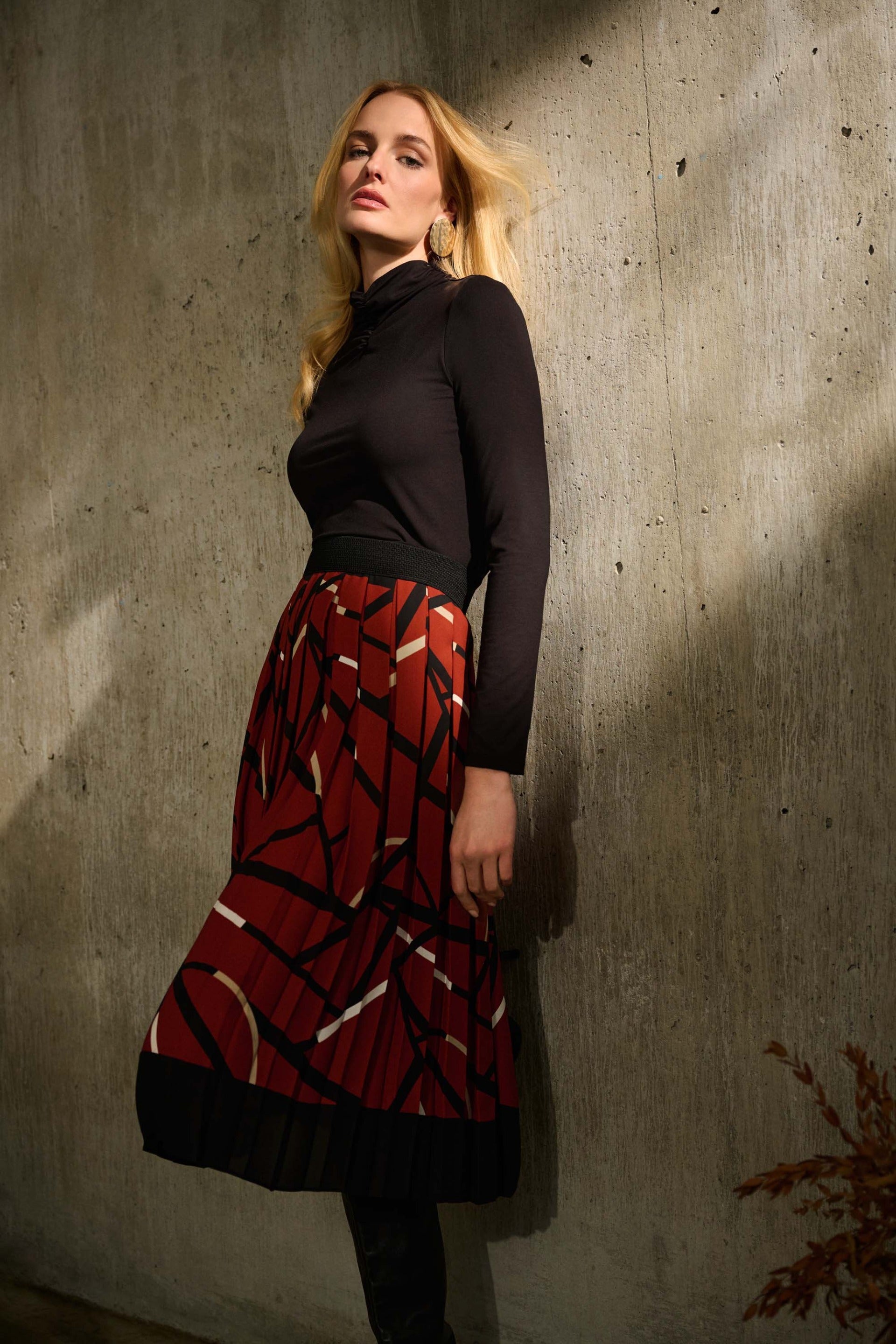 Joseph Ribkoff Cinnamon/Multi Geometric Print Pleated Skirt Style 243201