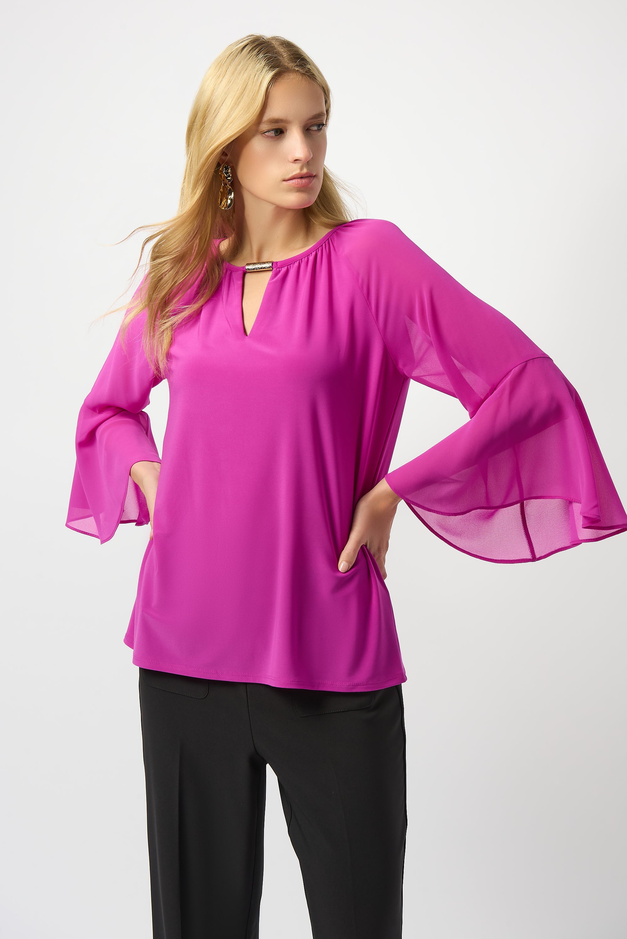 Joseph Ribkoff Cosmos Silky Knit and Chiffon Straight Top Style 253189
