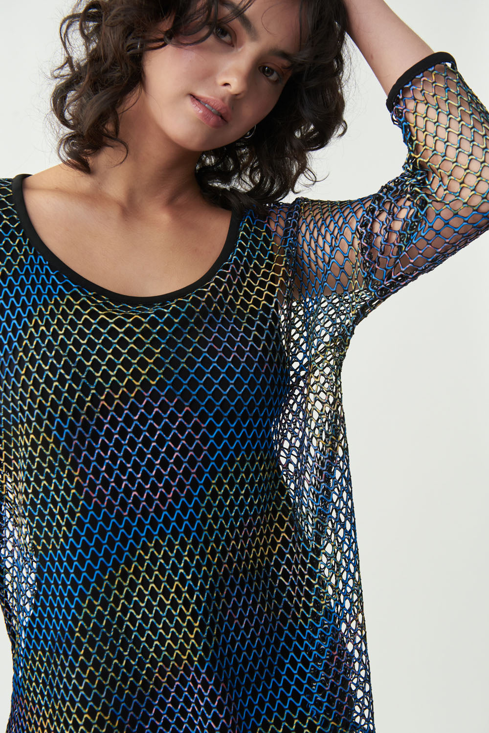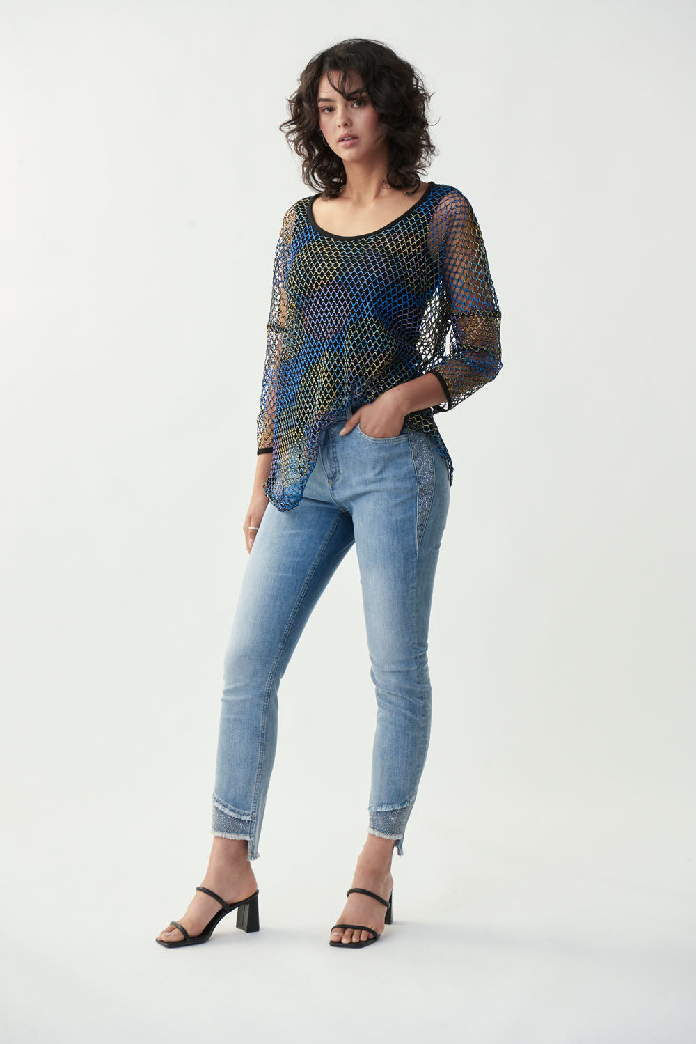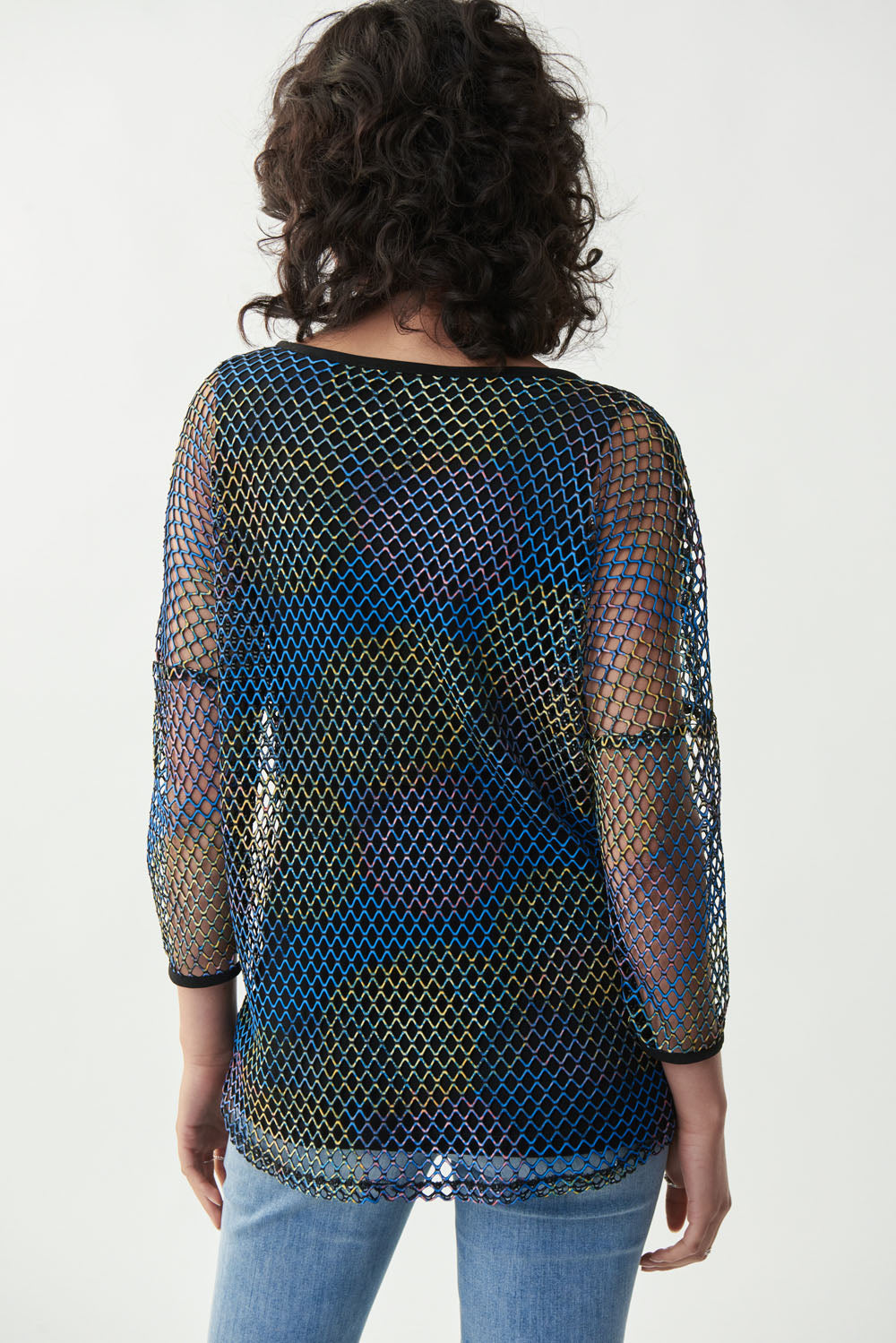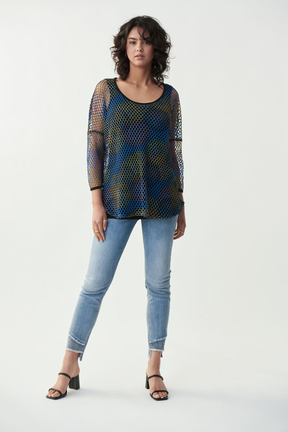 Joseph Ribkoff Mesh Black/Multi Overlay Top Style 221197