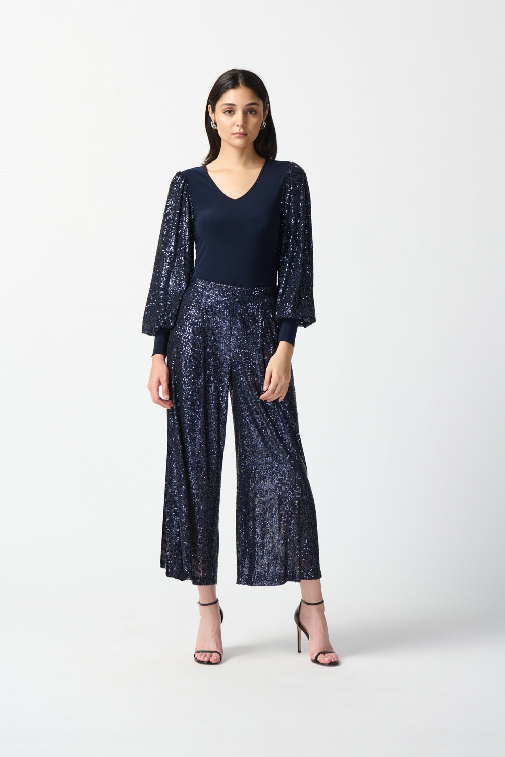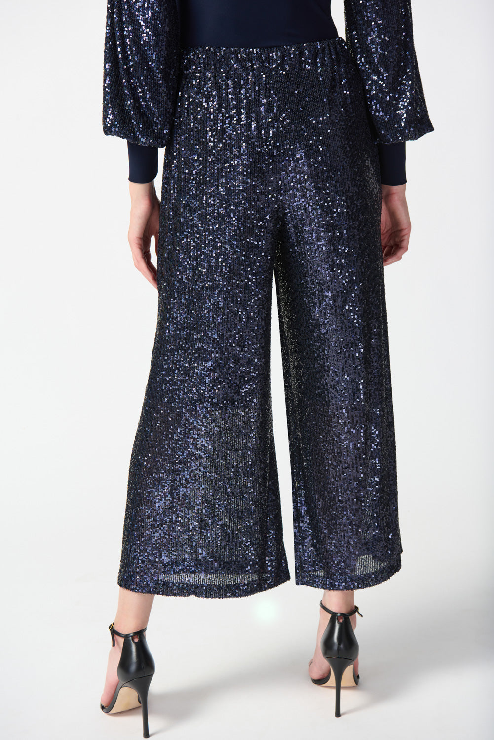 Joseph Ribkoff Midnight Blue Sequin Pull-On Culotte Pants Style 234215