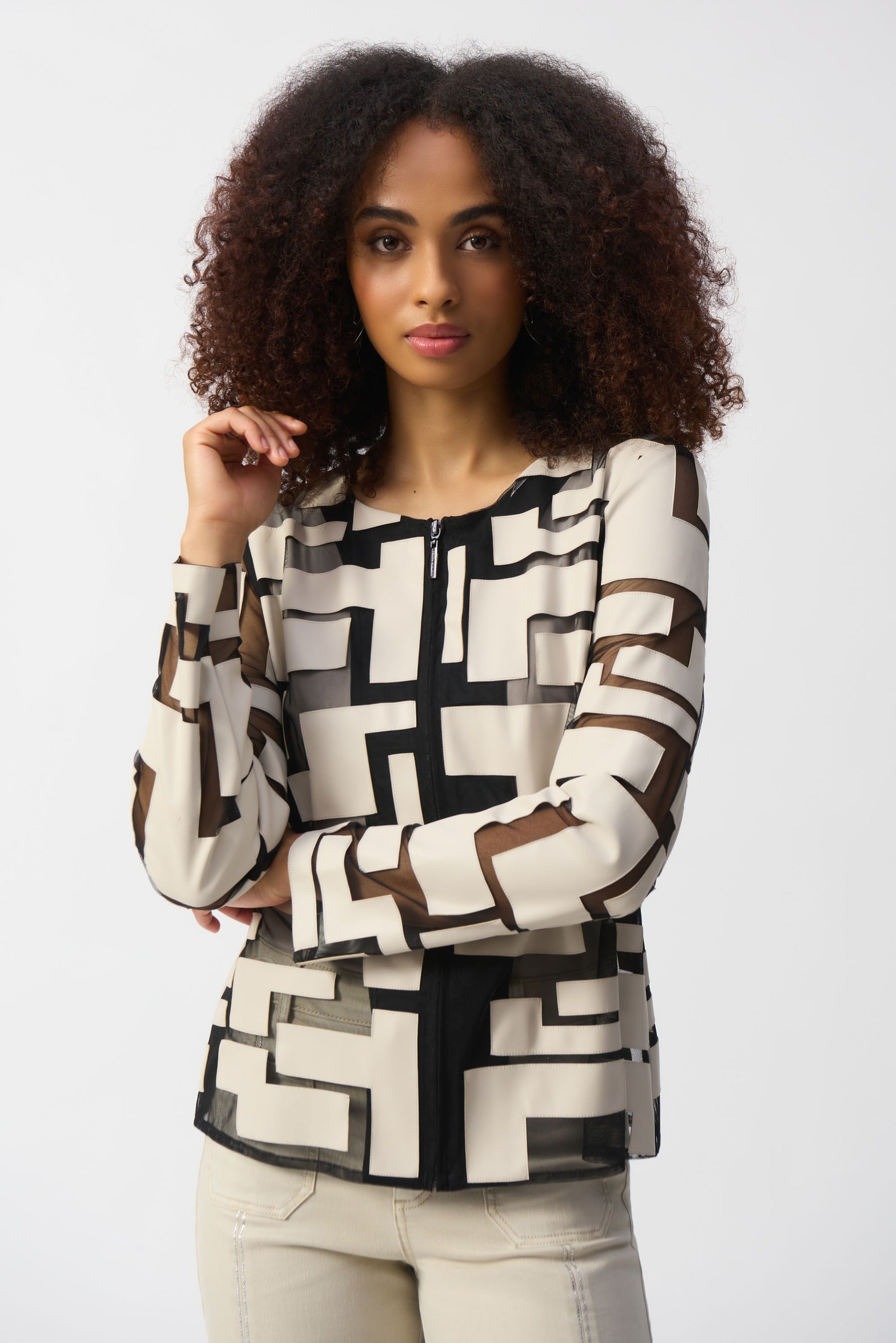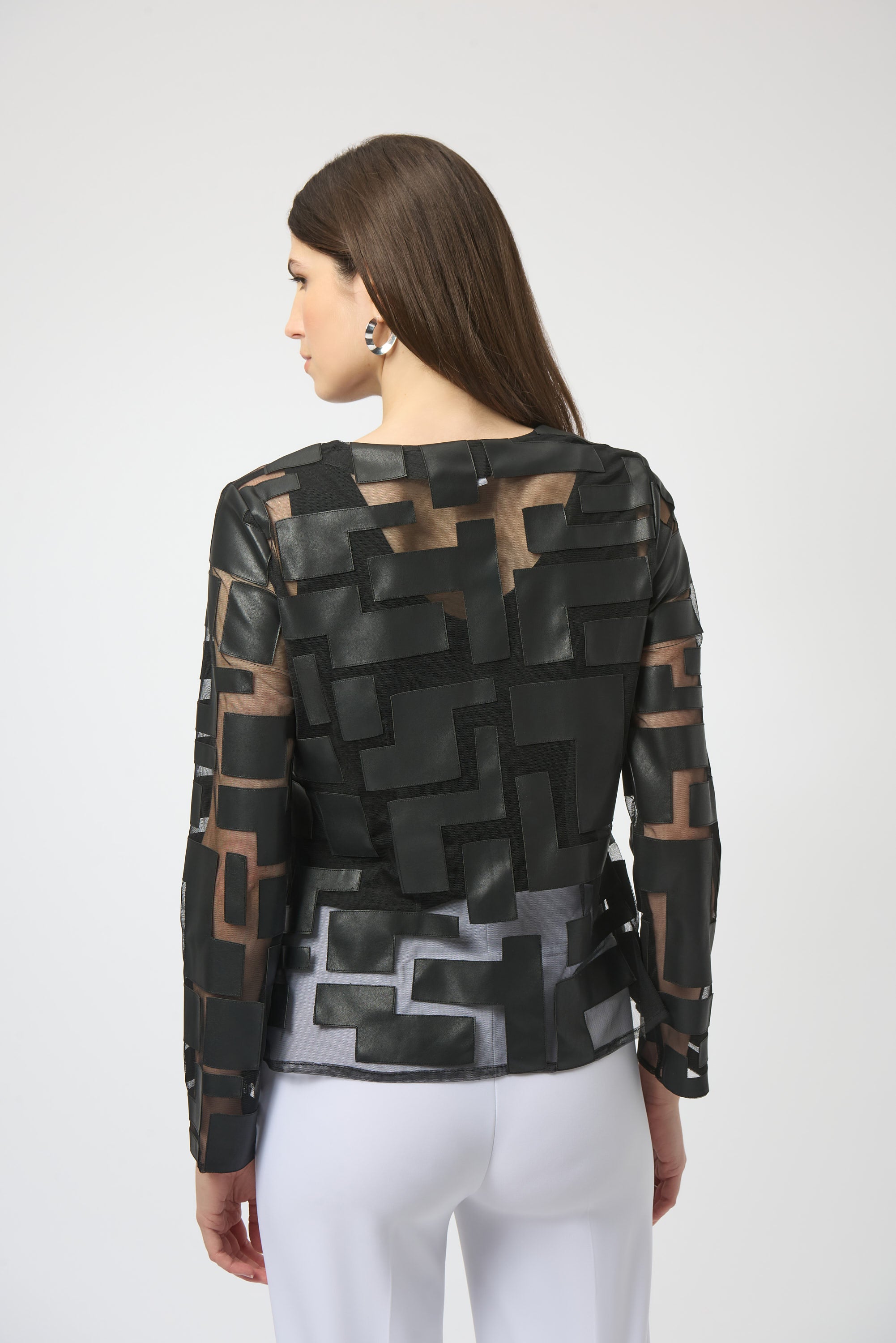 Joseph Ribkoff Mesh & Leatherette Fitted Jacket Style 251932