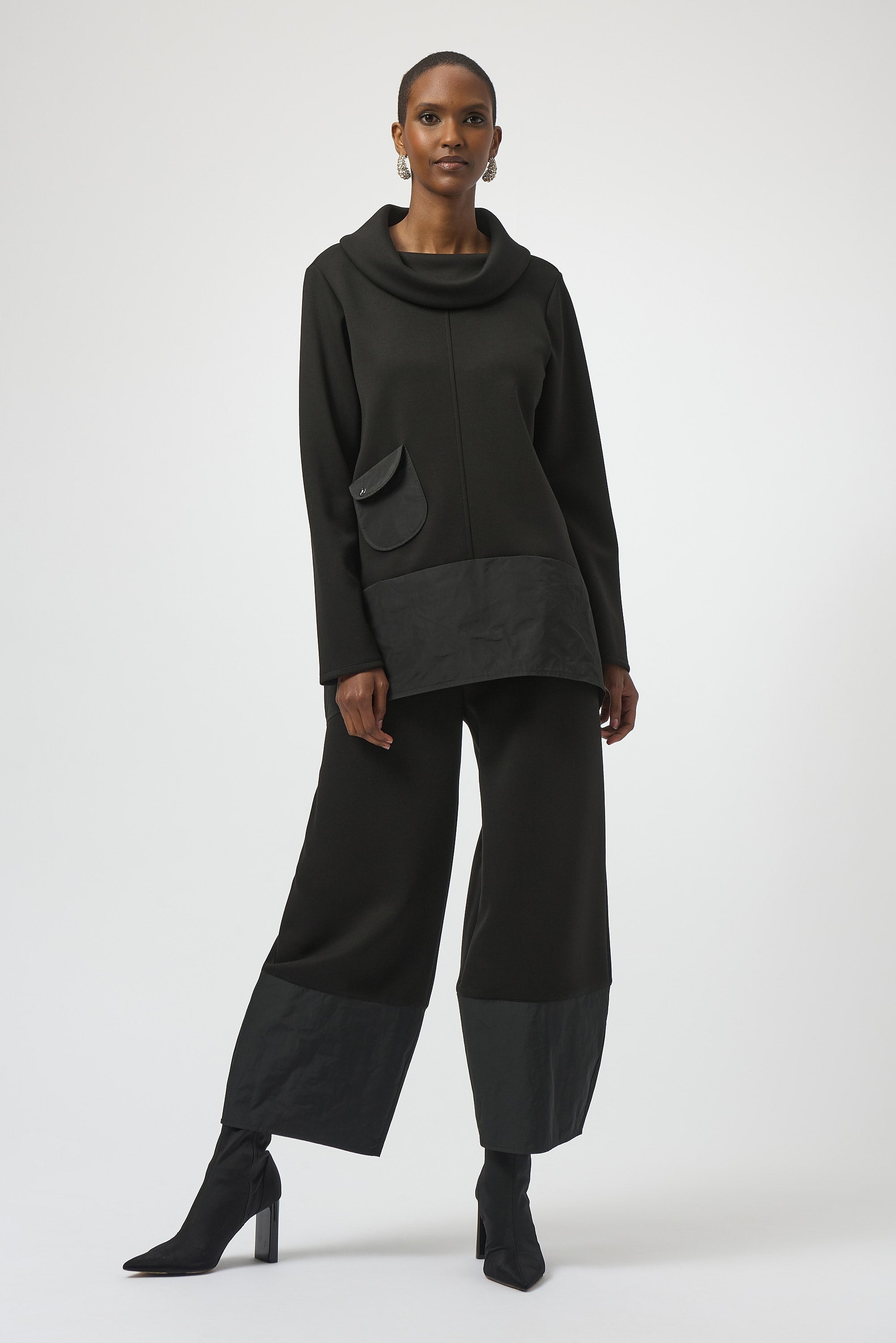 Crafted from premium scuba jersey, the Joseph Ribkoff Trapeze Tunic Style 254004 combines sophisticated design with exceptional comfort. Its fluid trapeze silhouette offers a flattering fit, while the draped cowl collar adds refined elegance. Practical side pockets seamlessly integrated into the sleek design enhance functionality without compromising style, making this tunic a versatile choice for modern wardrobes.
