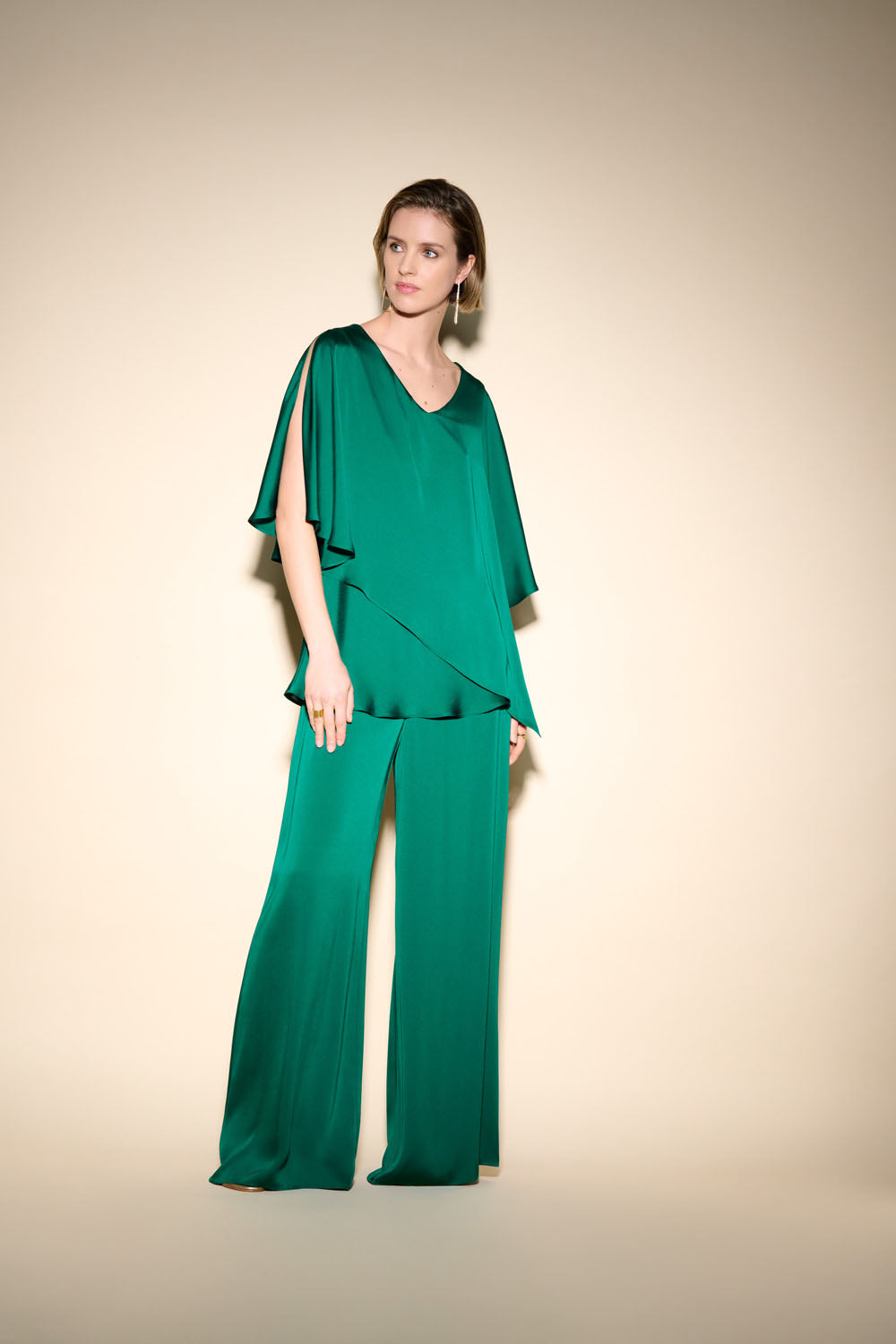 Joseph Ribkoff True Emerald Satin Wide-Leg Pants Style 233785