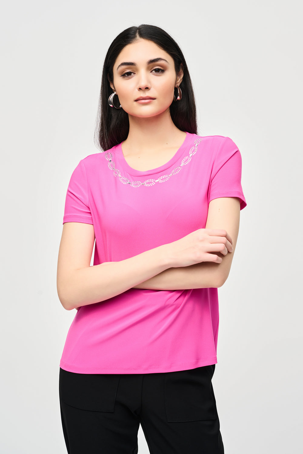 Joseph Ribkoff Ultra Pink Top with Rhinestone Neckline Style 241019