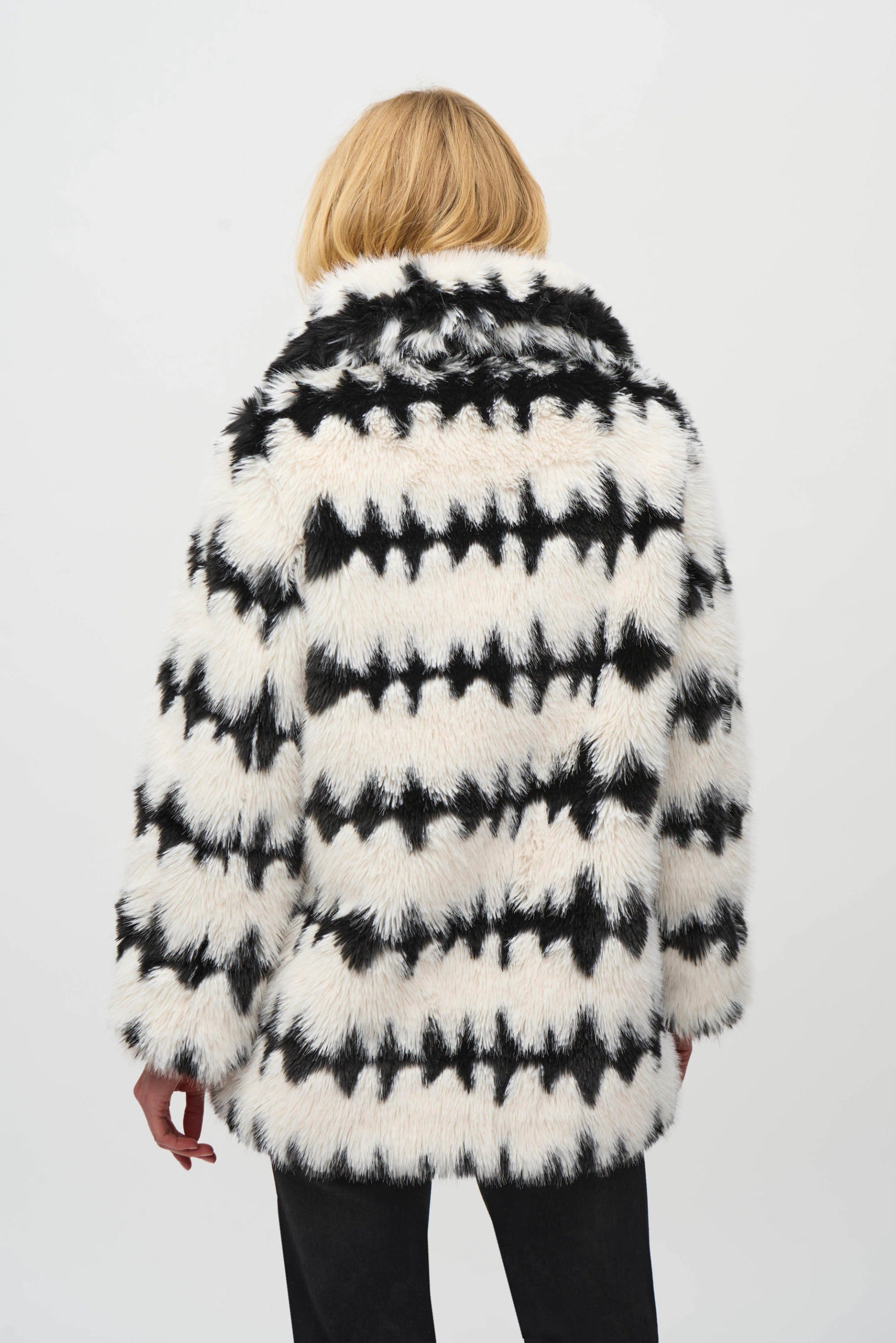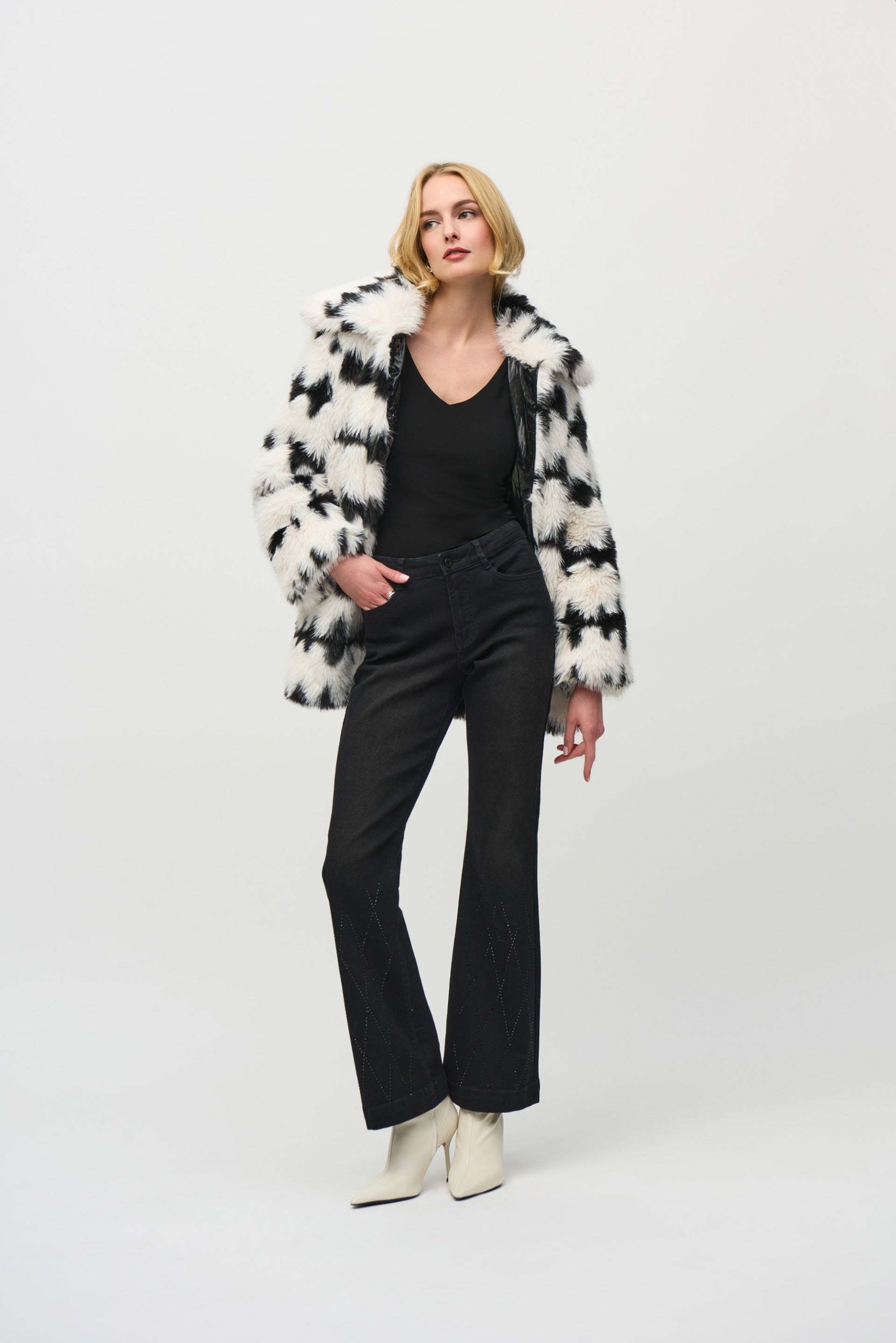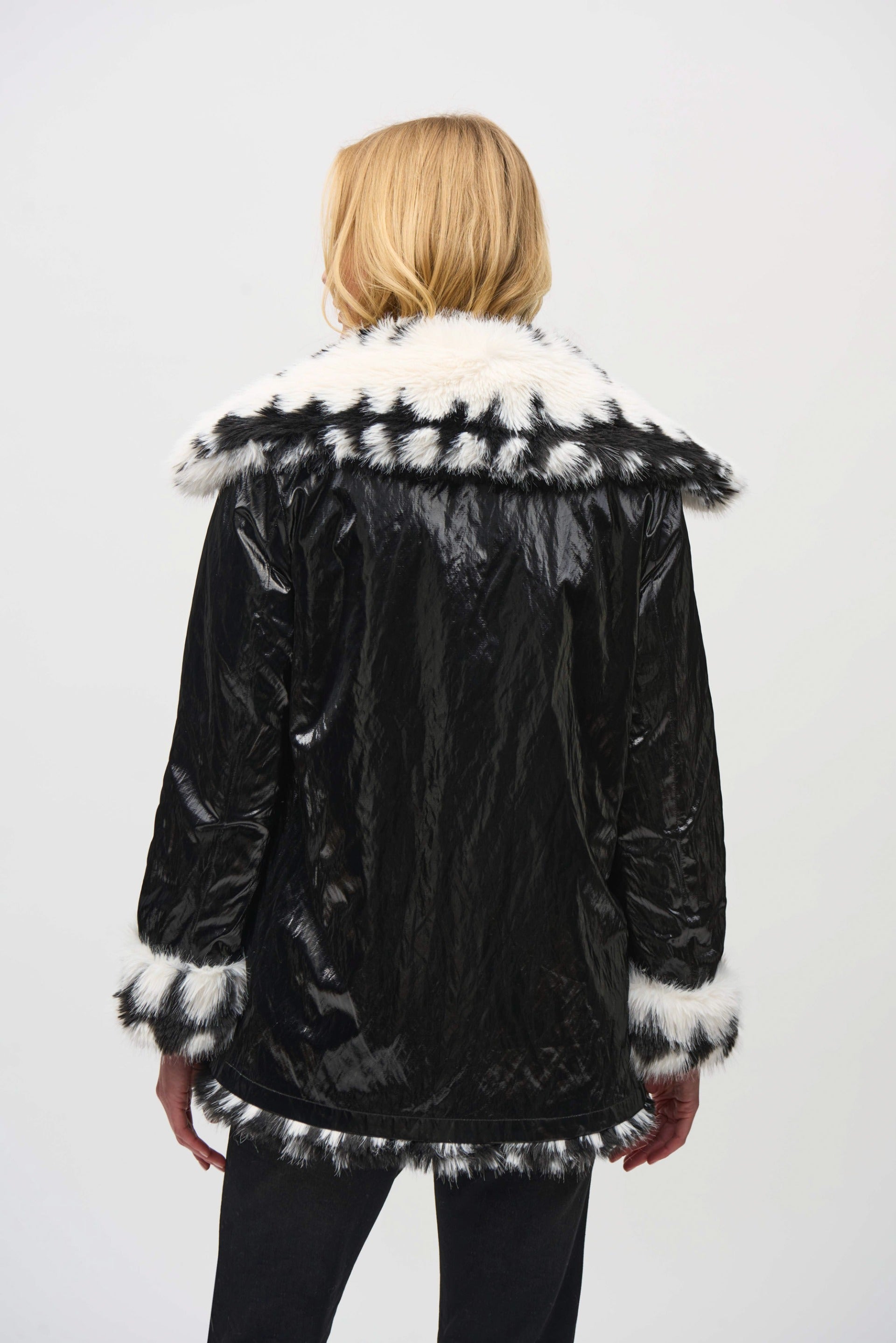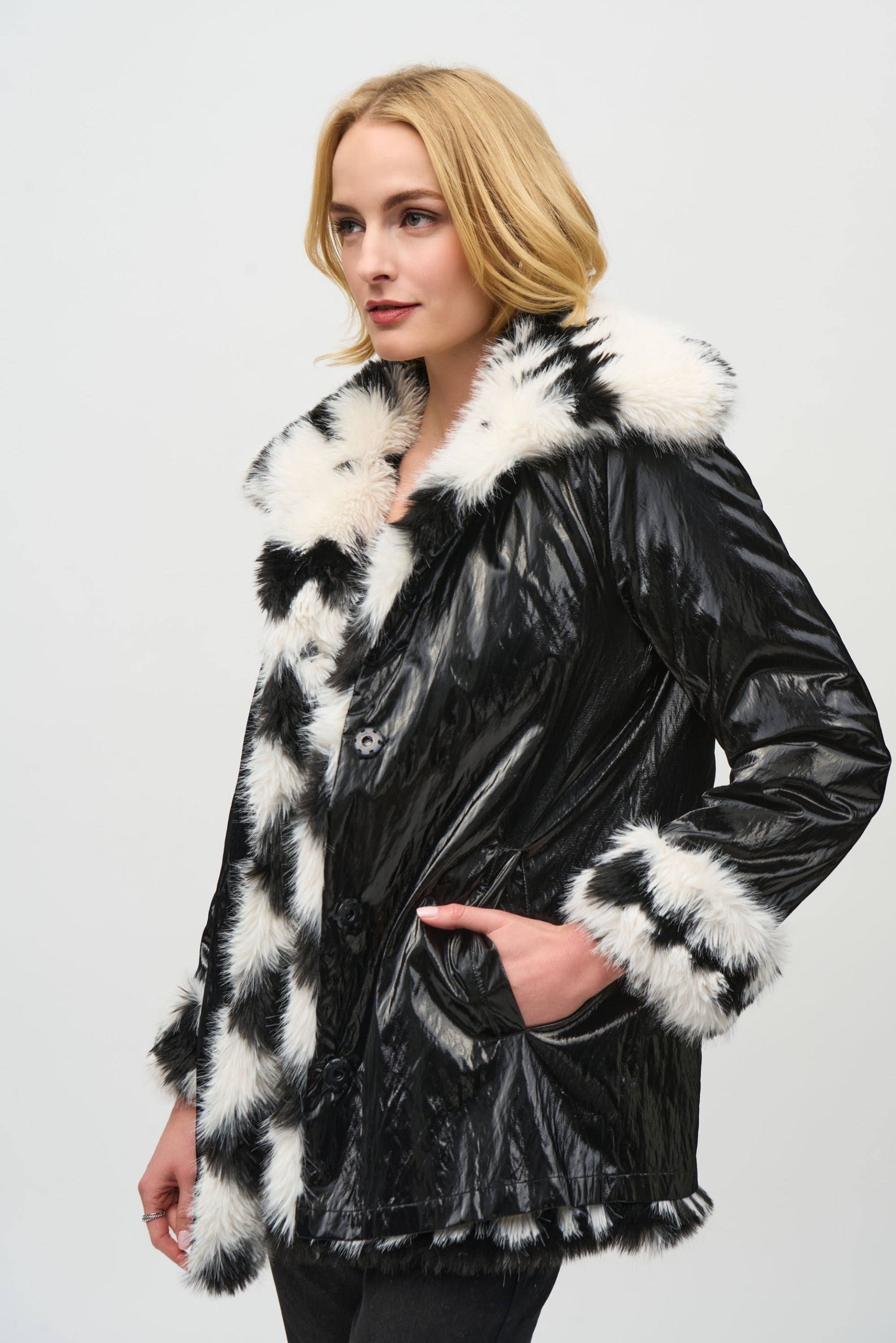 Joseph Ribkoff Vanilla/Black Reversible Faux Fur Coat Style 244900