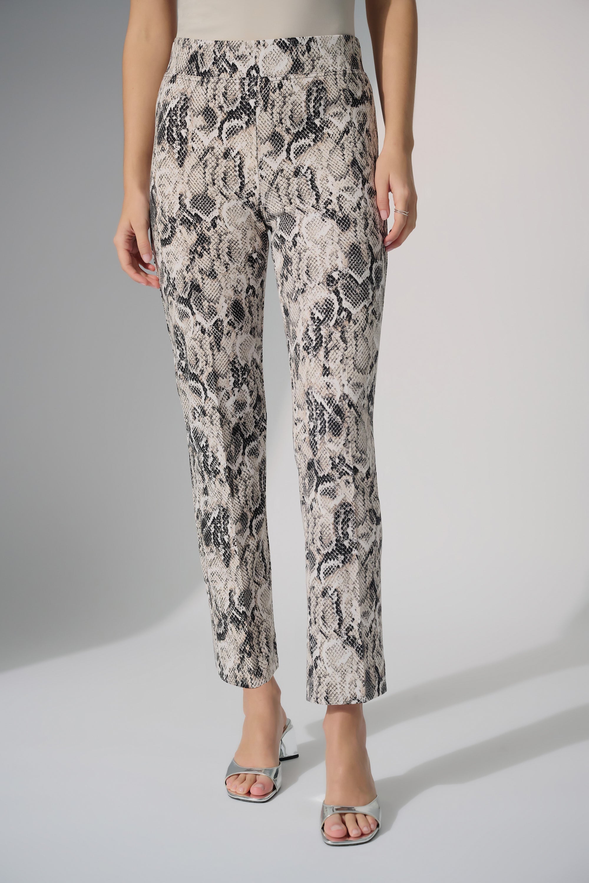 Joseph Ribkoff Beige/Multi Python Print Straight Leg Pants Style 252238
