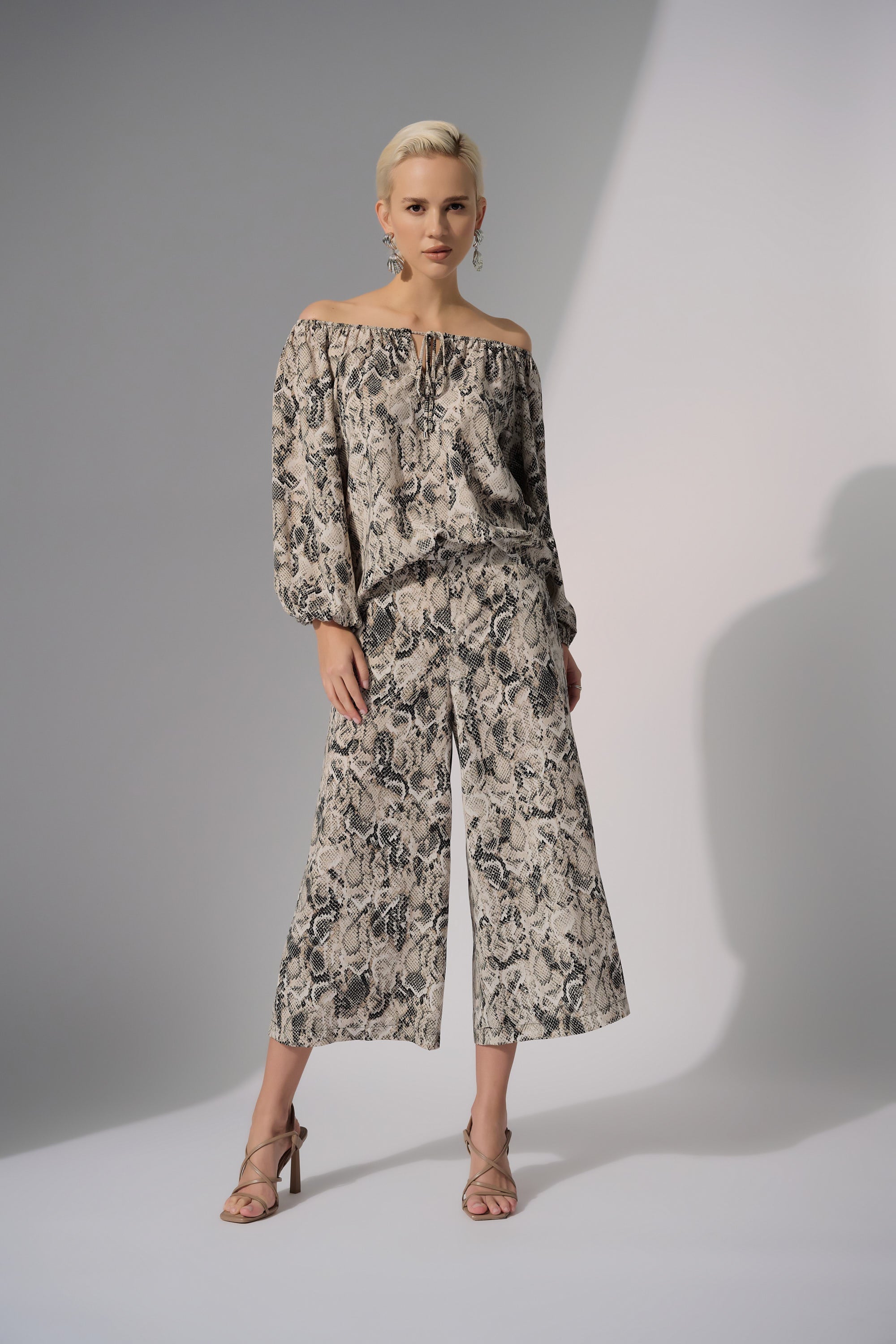 Joseph Ribkoff Beige/Multi Woven Gauze Python Print Flared Top Style 252241
