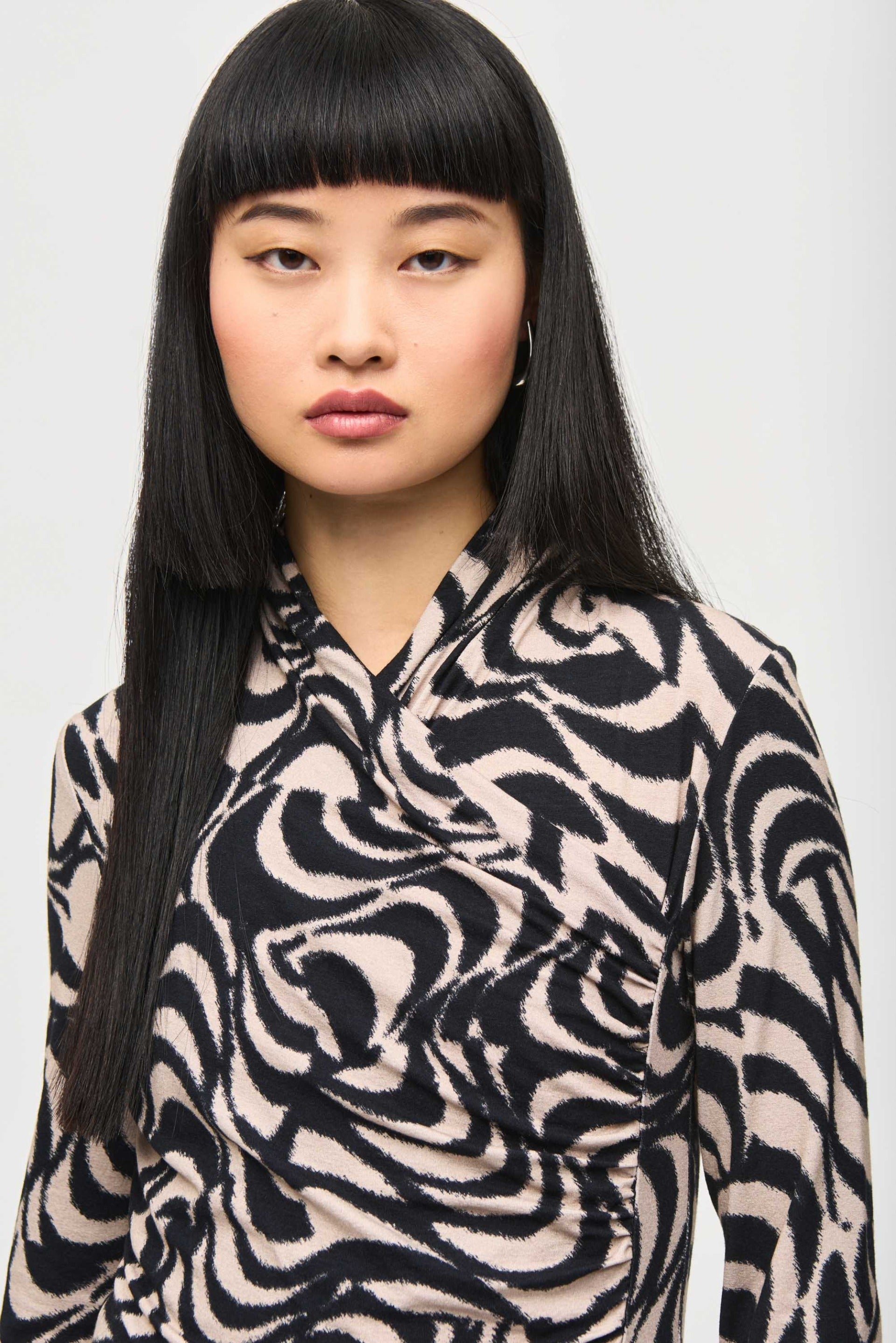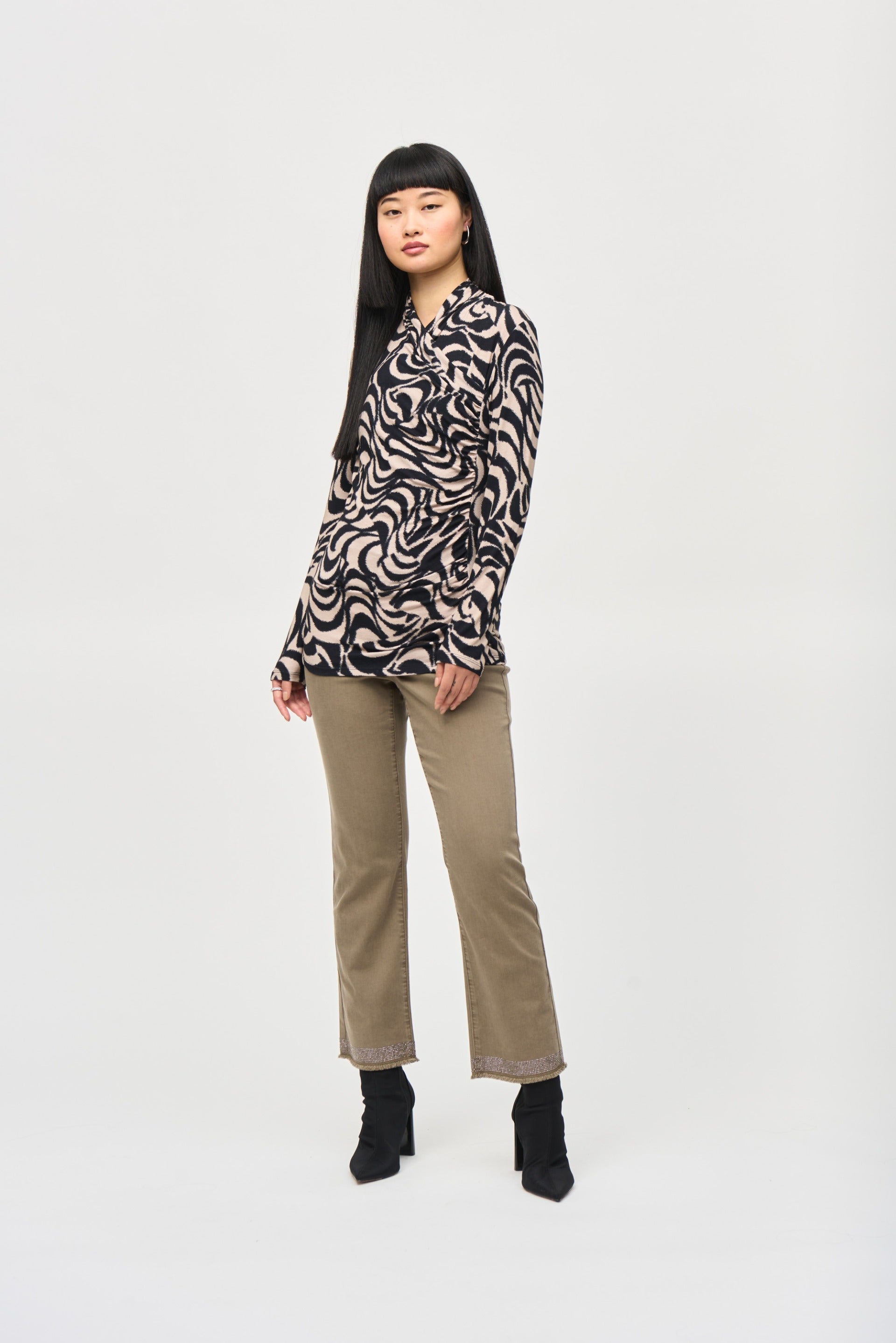 Joseph Ribkoff Black/Dune Abstract Print Fitted Top Style 243149