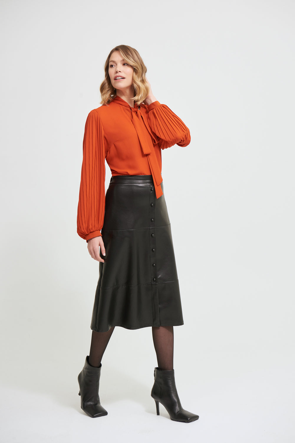 Joseph Ribkoff Black Faux Leather A-Line Skirt Style 213337