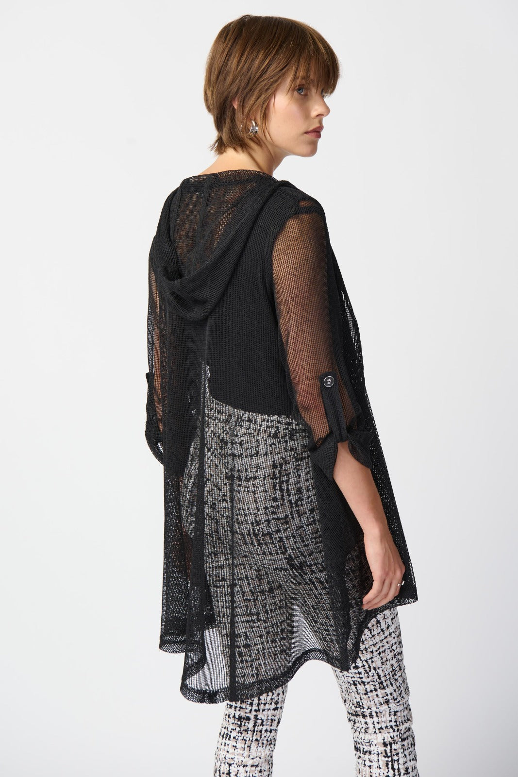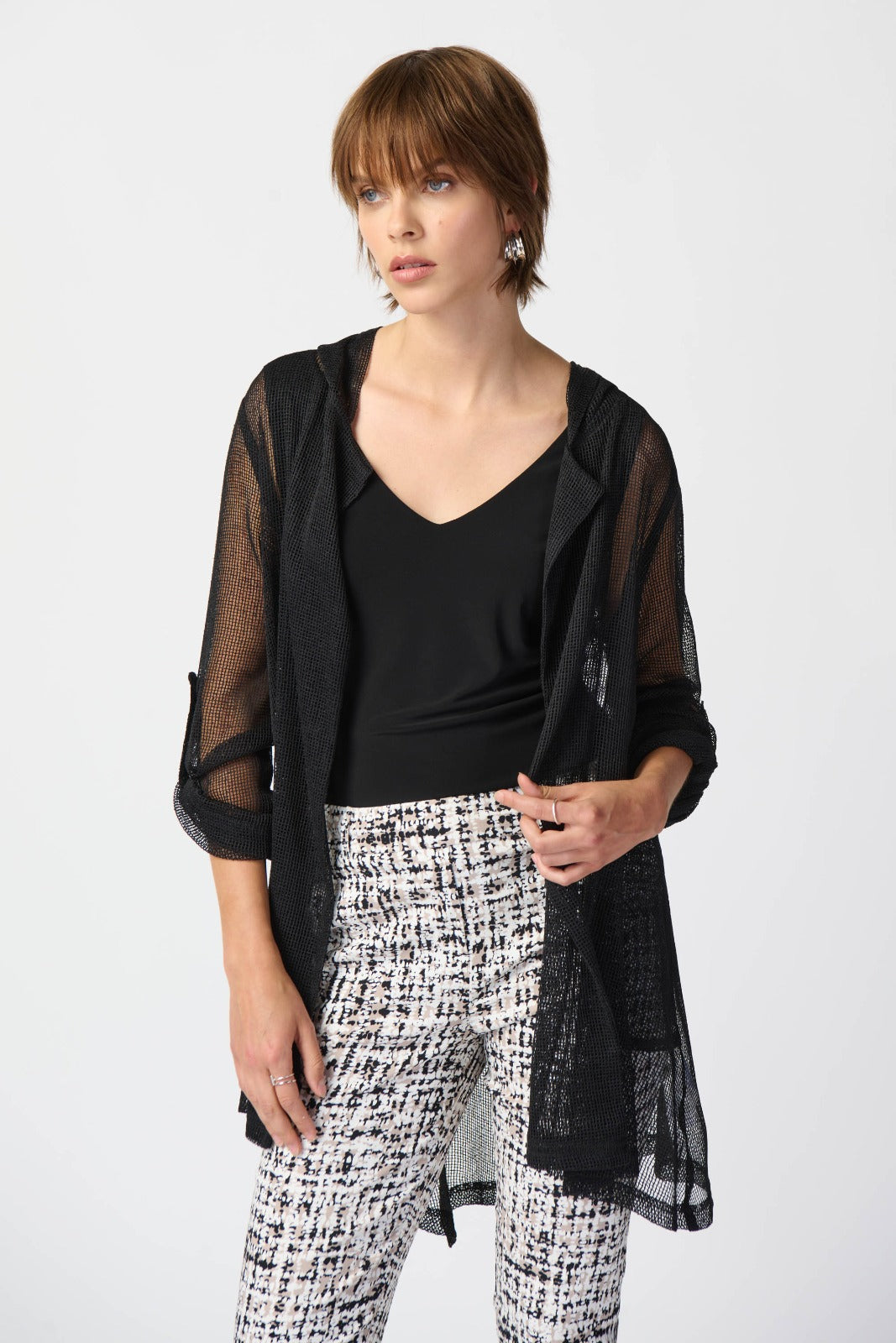 Joseph Ribkoff Black Mesh Knit Hooded Jacket Style 241075