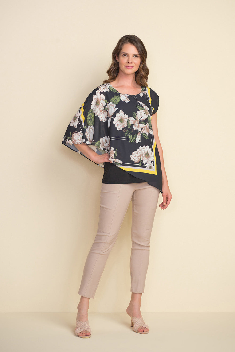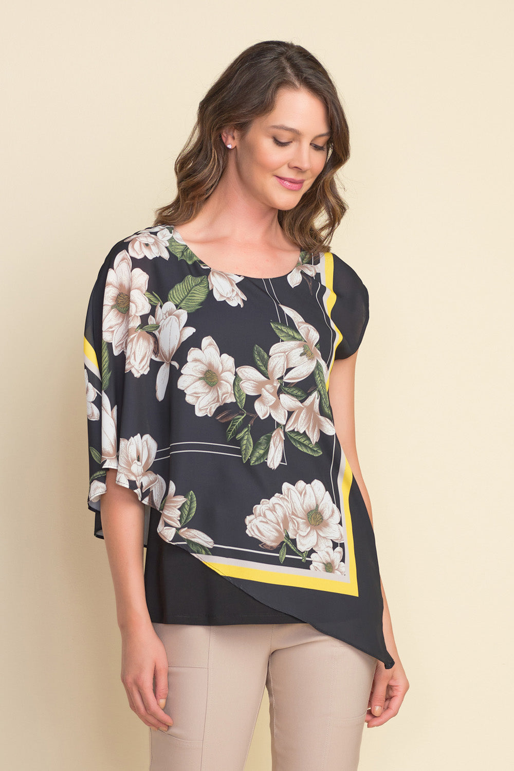 Joseph Ribkoff Black/Multi Asymmetric Hem Top Style 212137