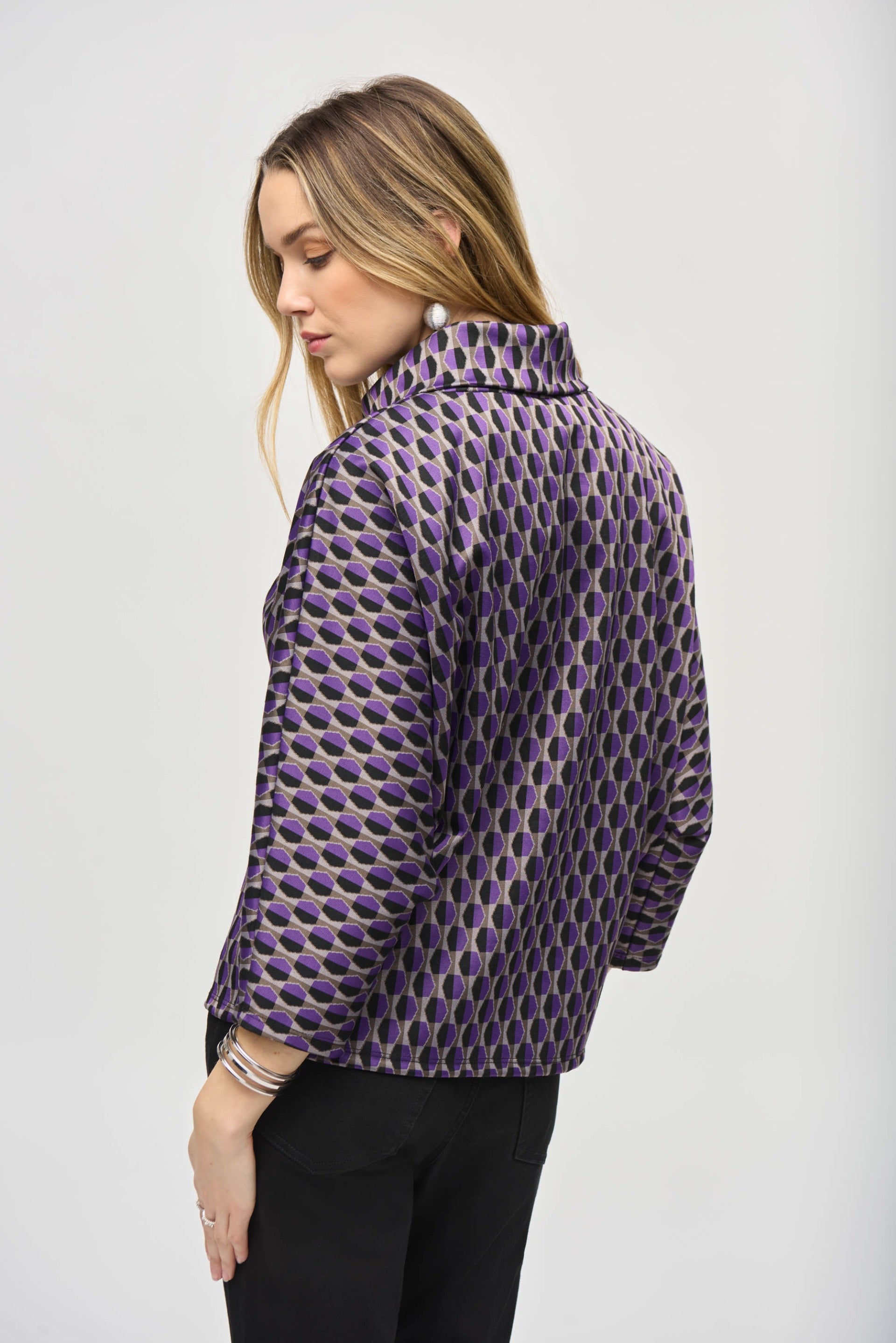 Joseph Ribkoff Black/Multi Geometric Print Boxy Top Style 243281