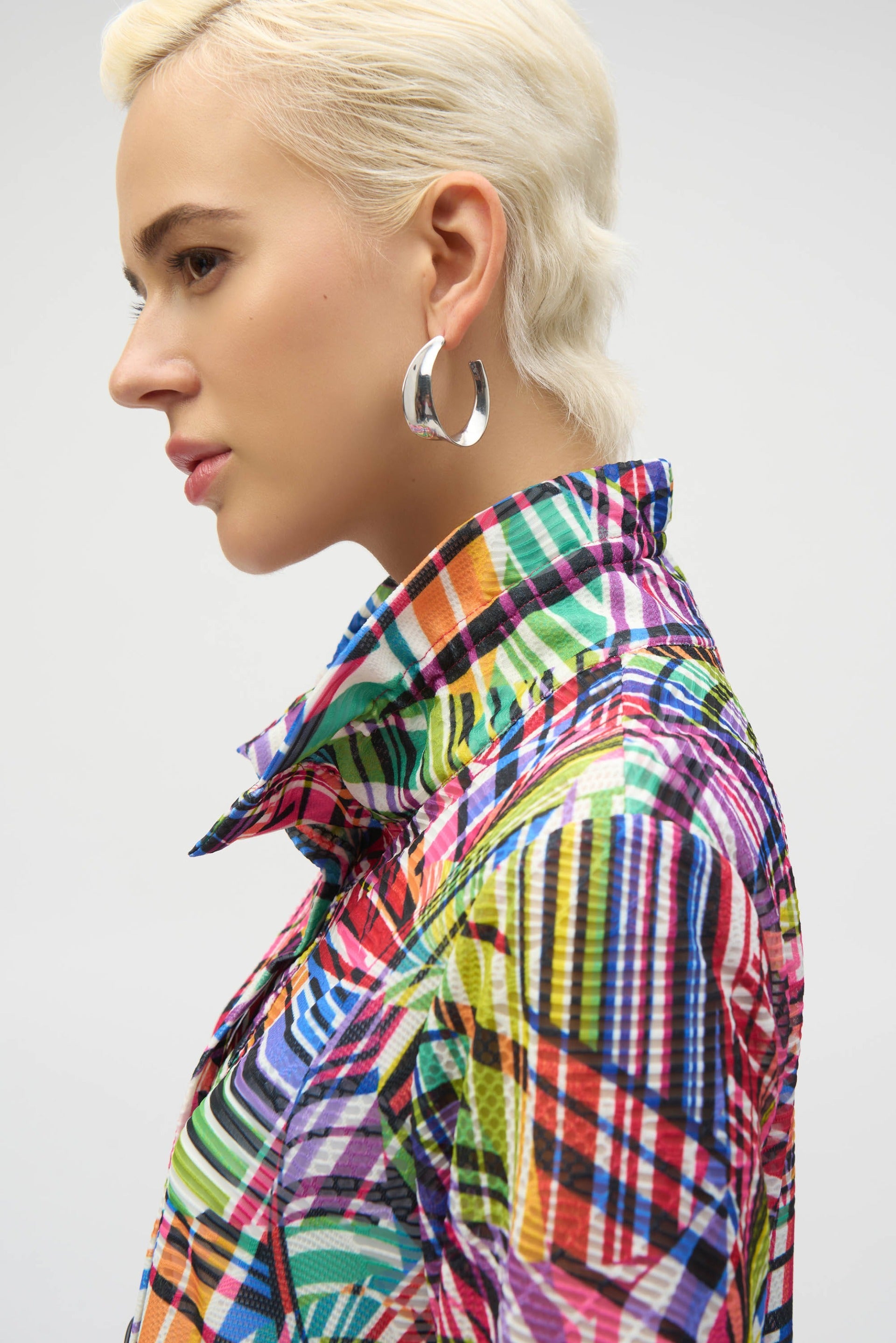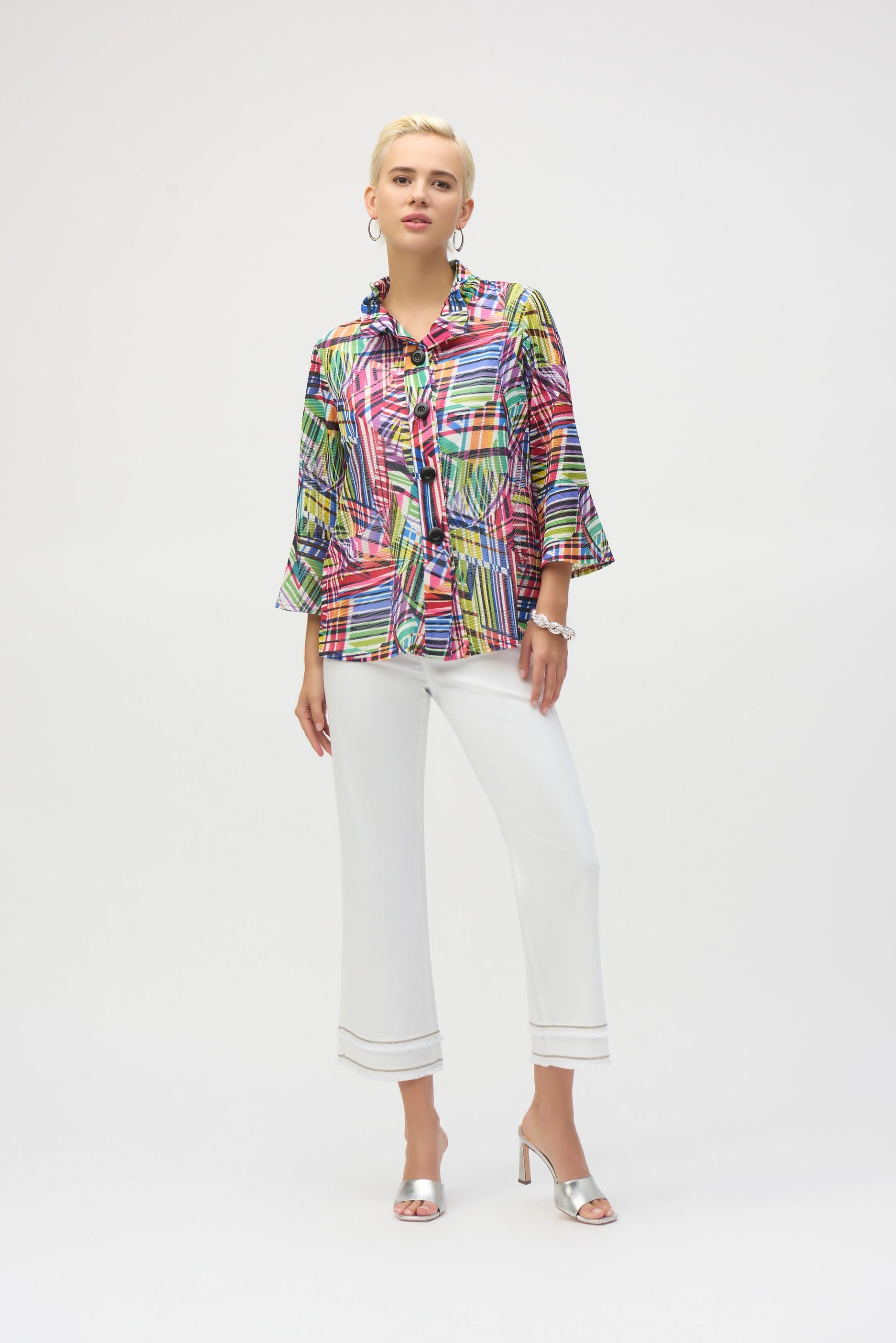 Joseph Ribkoff Black/Multi Jacquard Stripe Patchwork Print Trapeze Jacket Style 252038