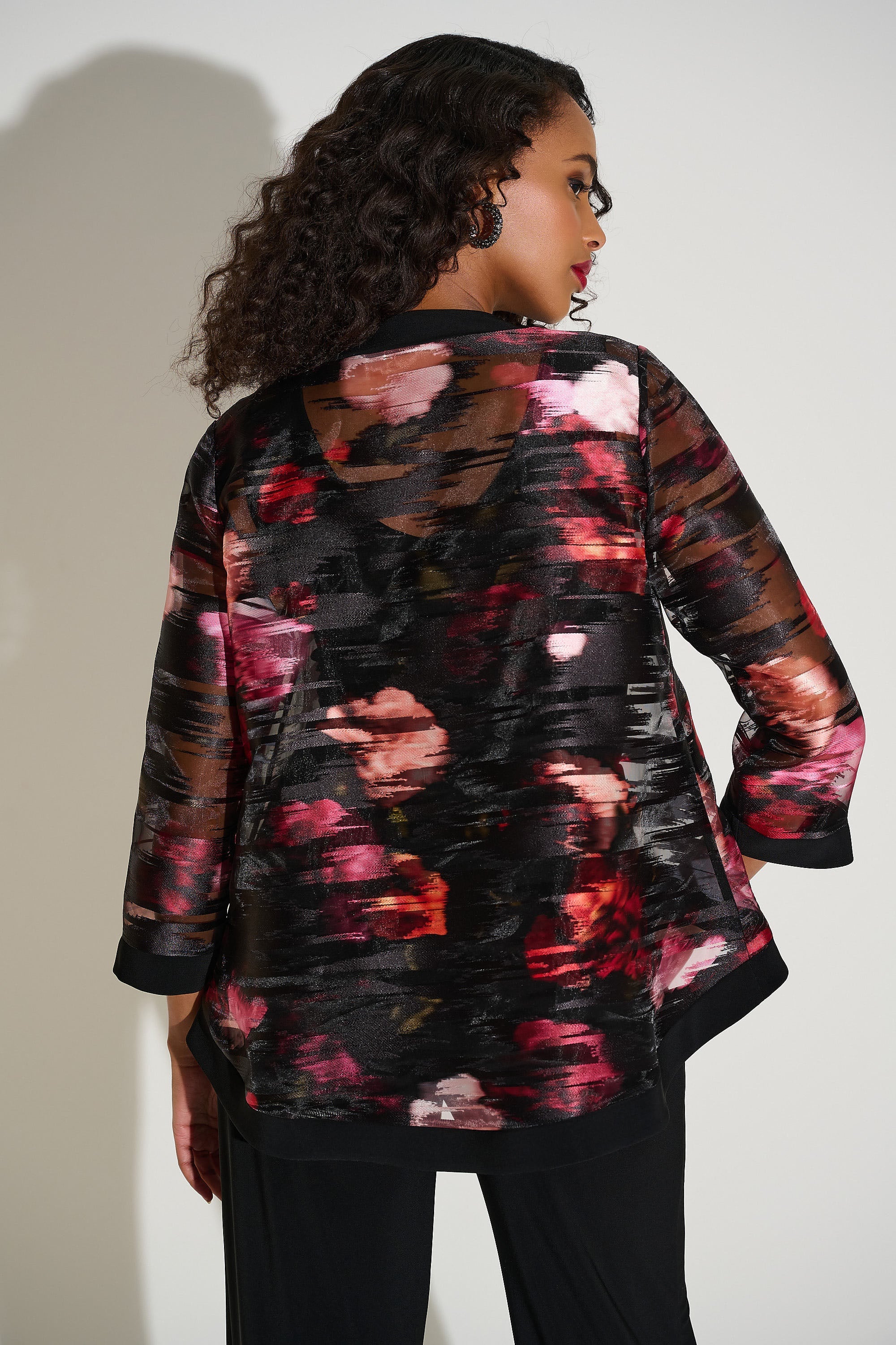Joseph Ribkoff Black/Multi Organza & Silky Knit Floral Swing Jacket Style 253792.