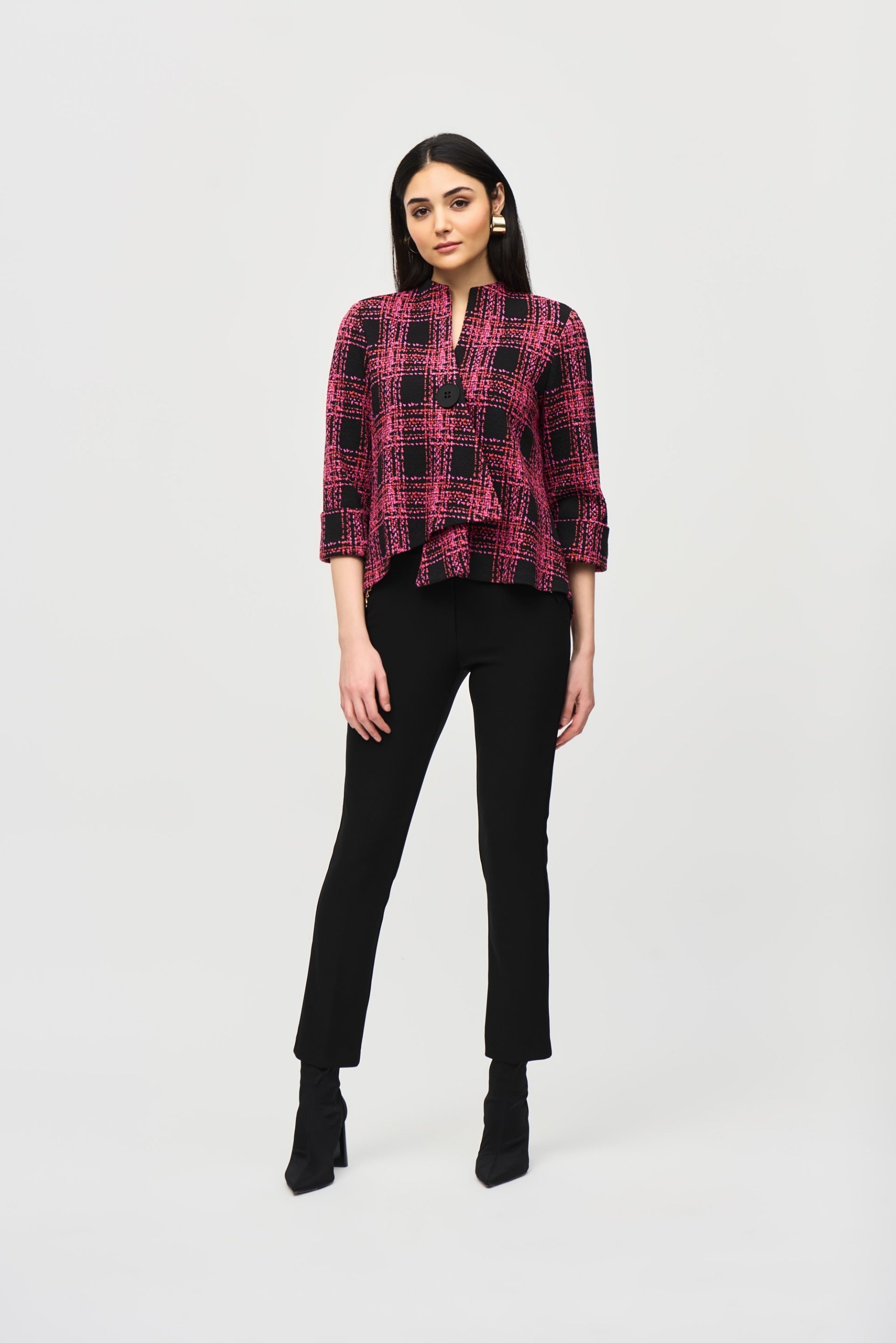 Joseph Ribkoff Black/Multi Plaid Print Swing Jacket Style 243296