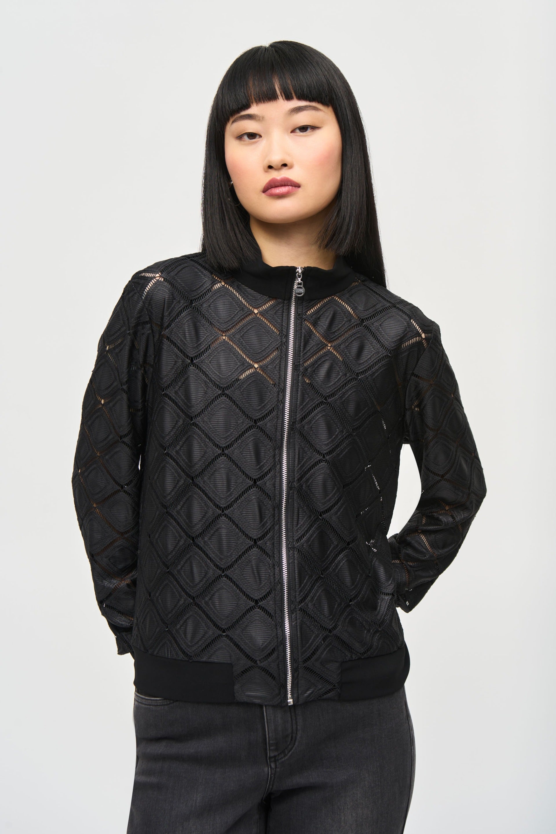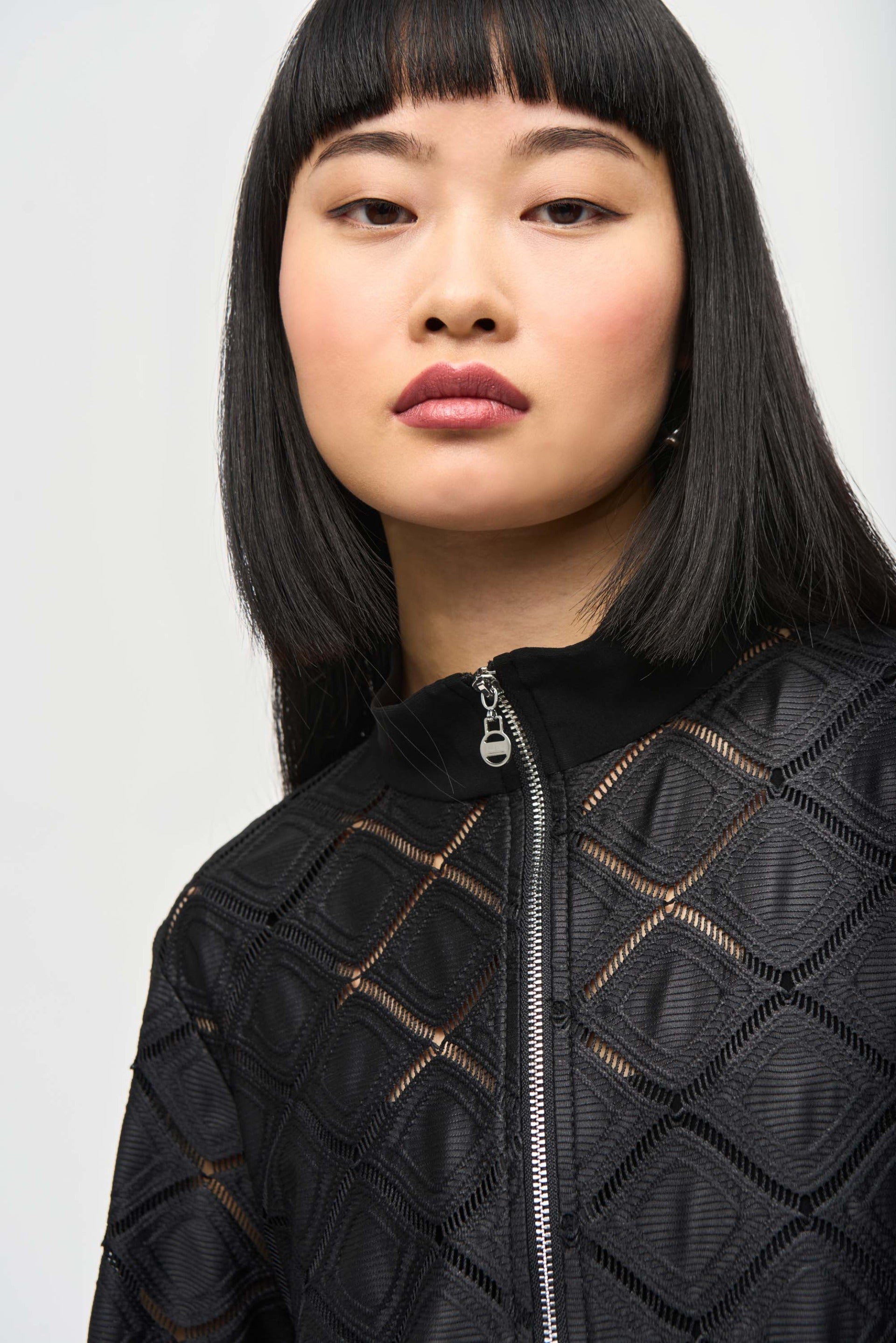 Joseph Ribkoff Black Novelty Knit Boxy Jacket Style 243115