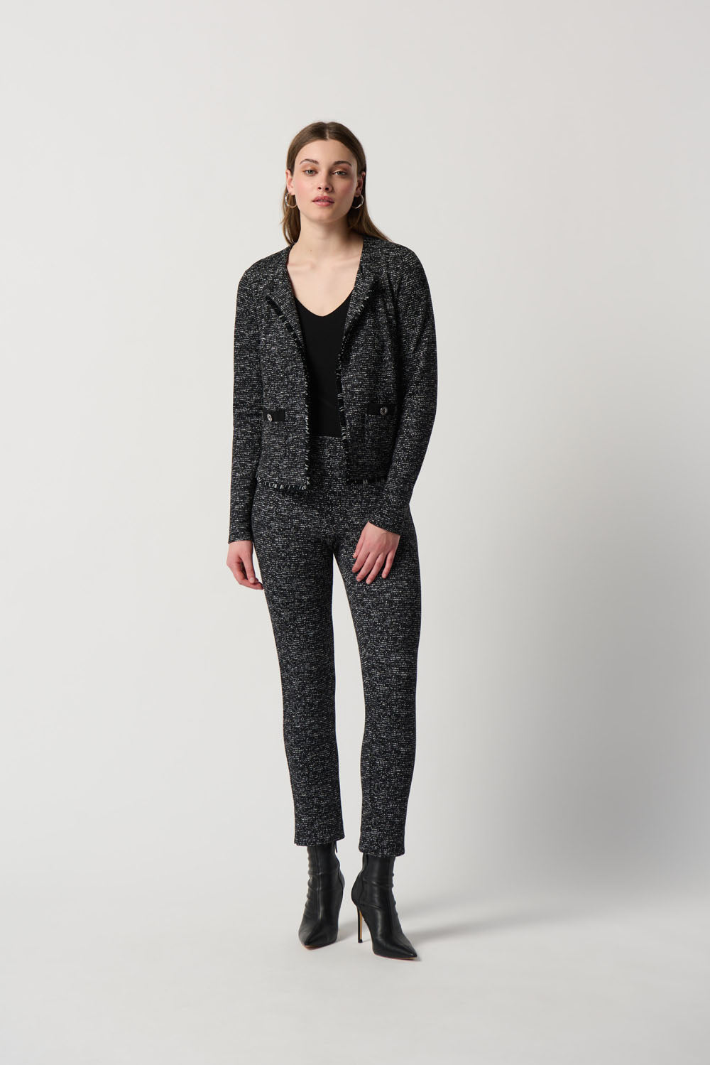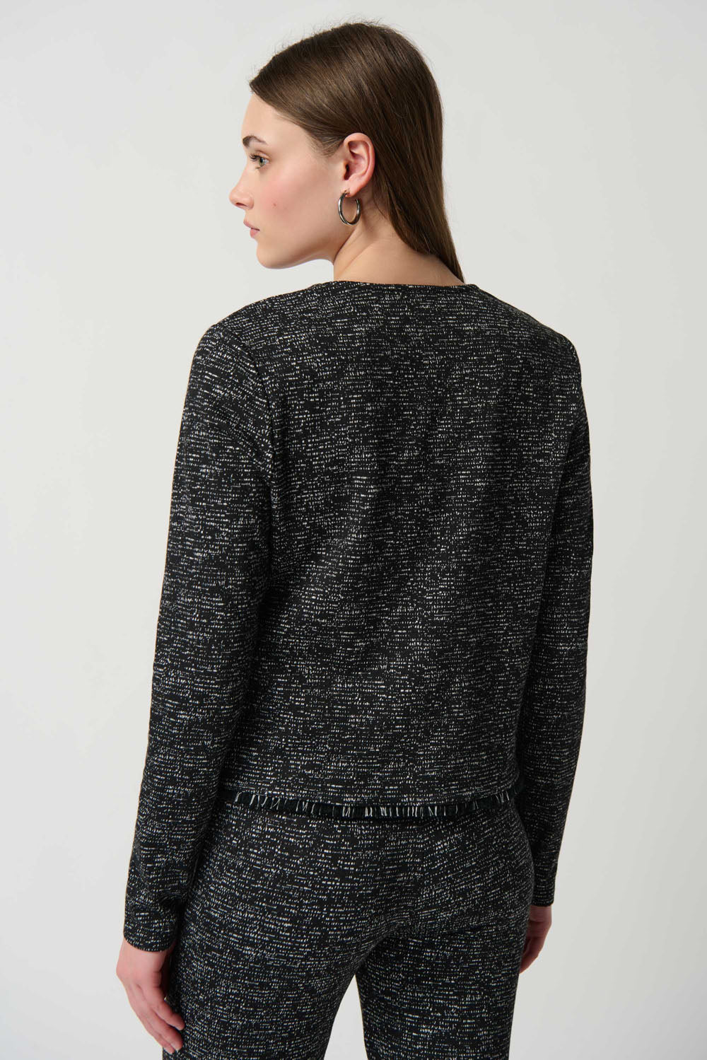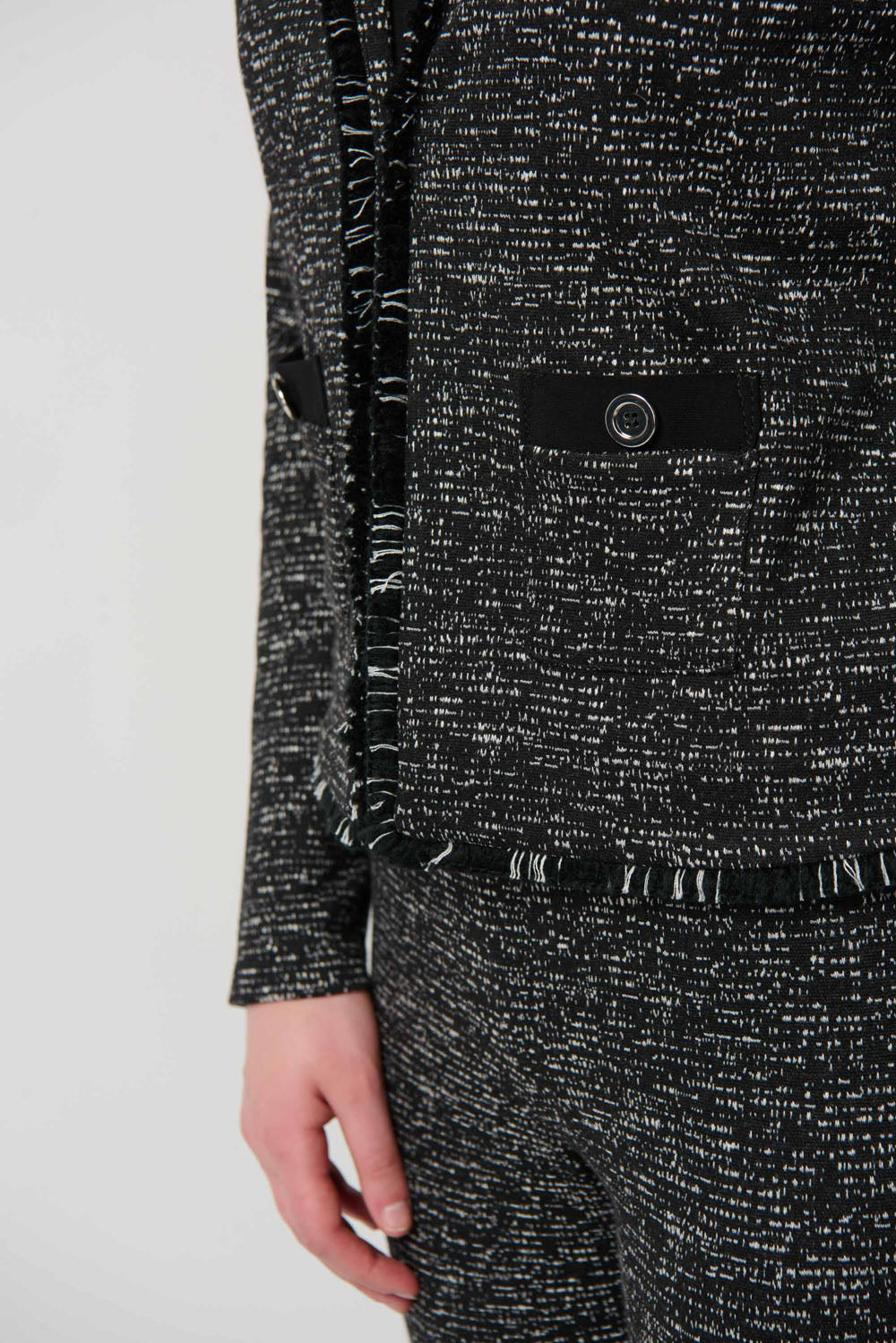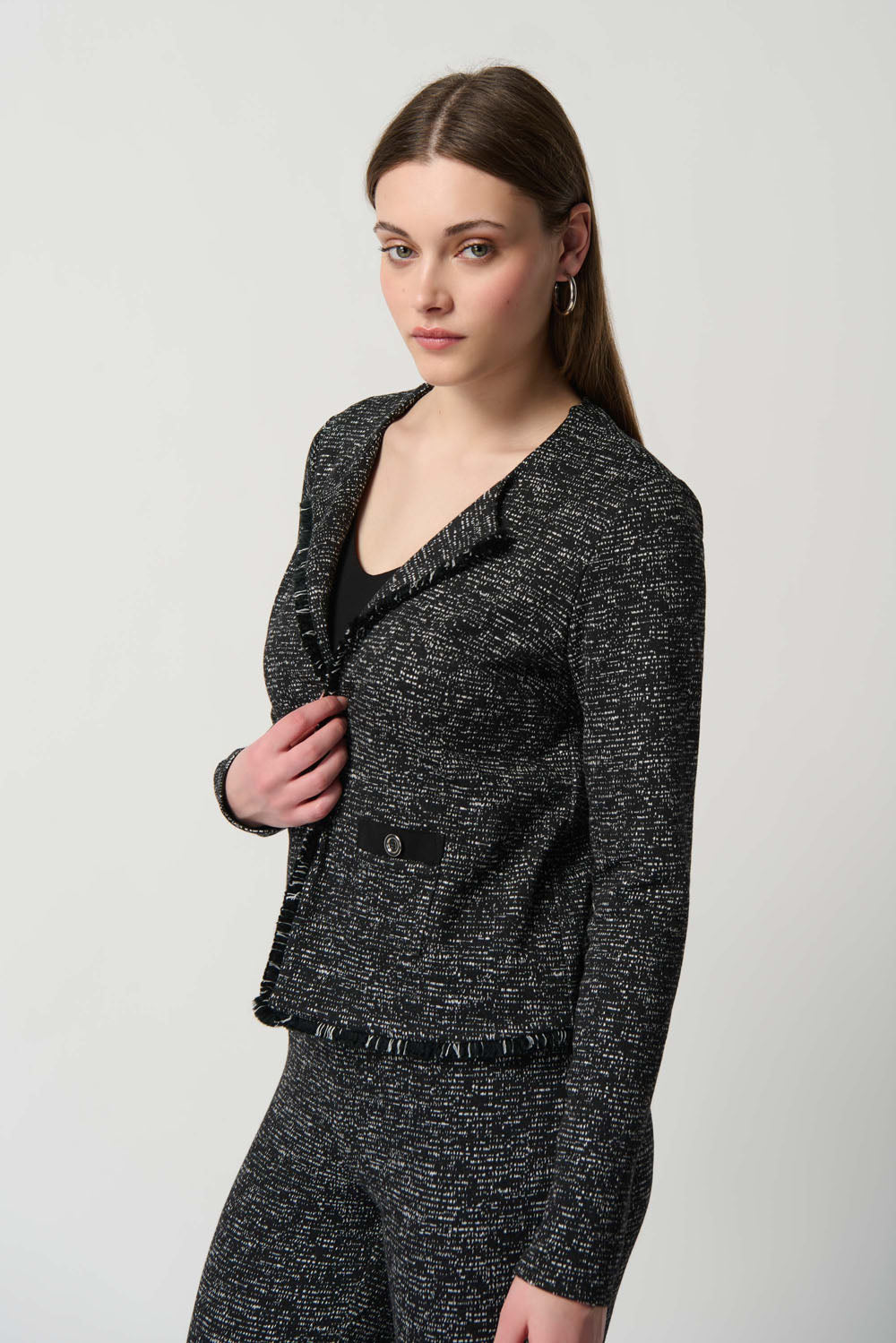 Joseph Ribkoff Black/Off-White Jacquard Knit Jacket With Fringe Detail Style 234161