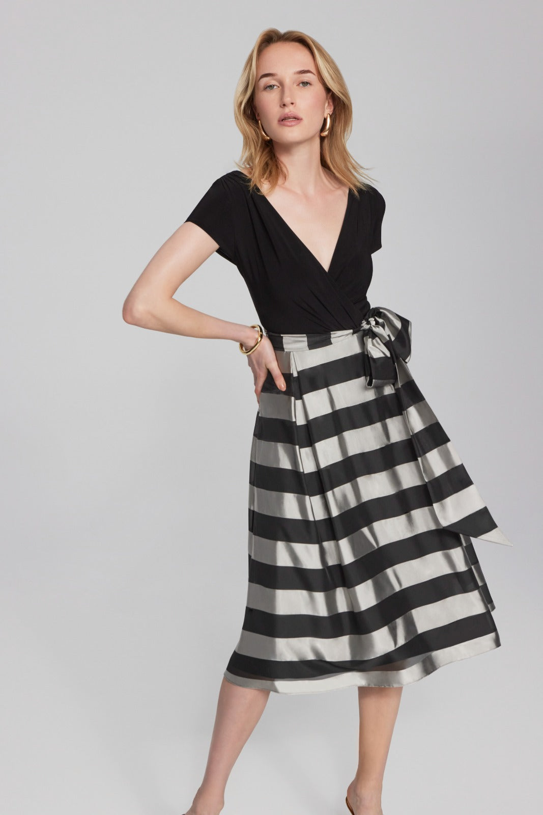 Joseph Ribkoff Black/Silver Striped Organza Fit-and-Flare Dress Style 241748