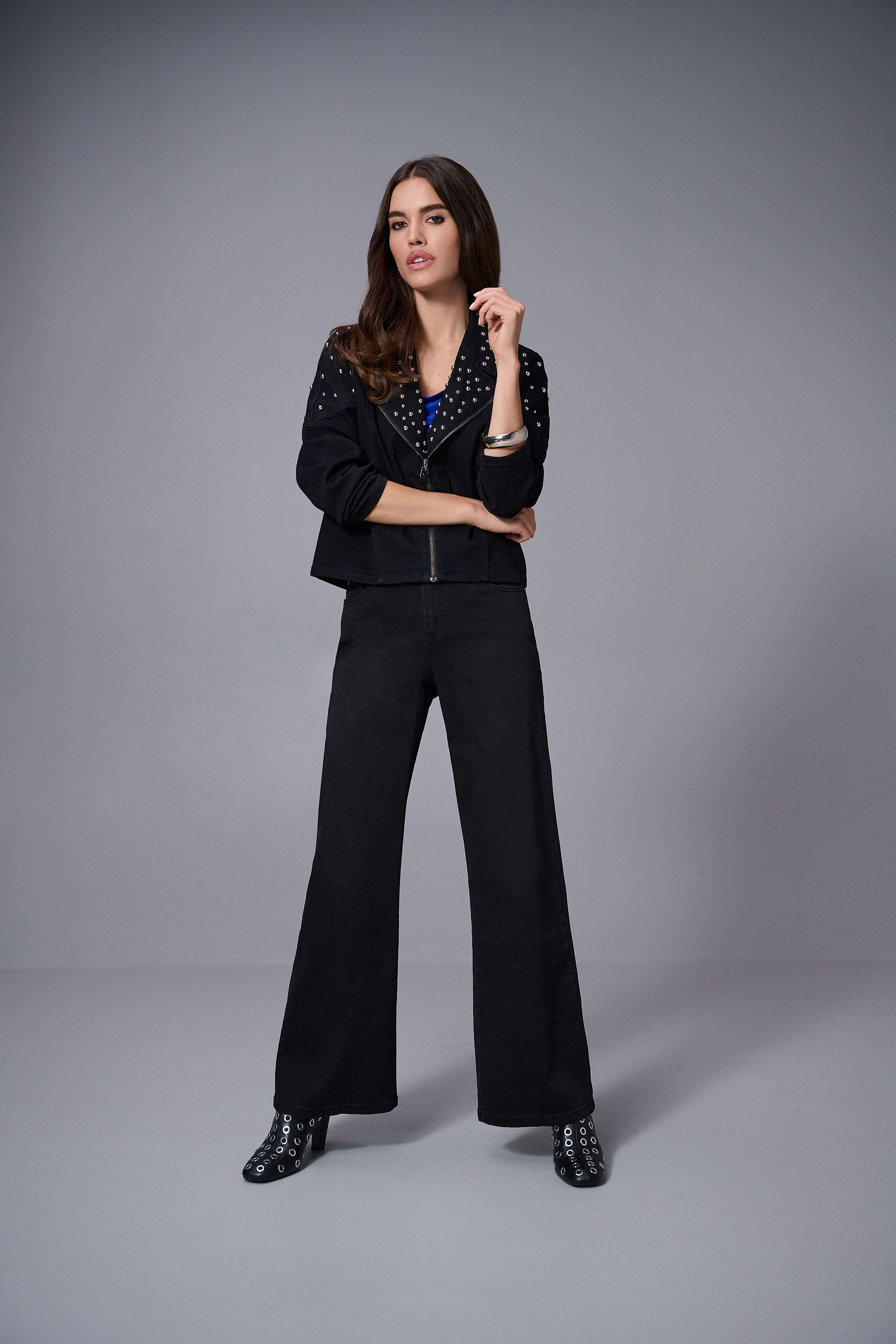 Joseph Ribkoff Black Stretch Denim Jacket With Stud Detailing Style 253947
