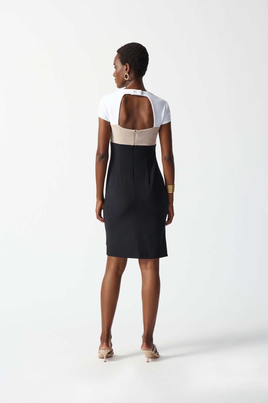 Joseph Ribkoff Black/Vanilla/Dune Color-Block Sheath Dress Style 242156
