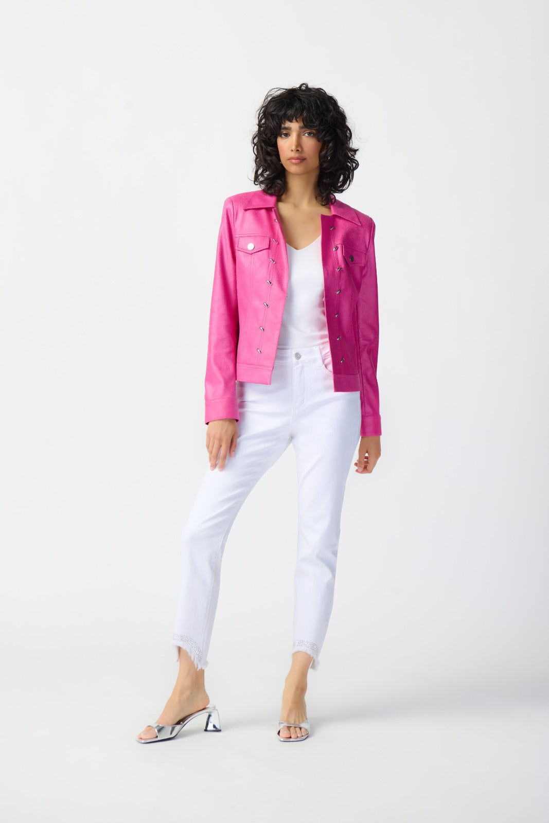Joseph Ribkoff Bright Pink Foiled Suede Jacket With Metal Trims Style 241911