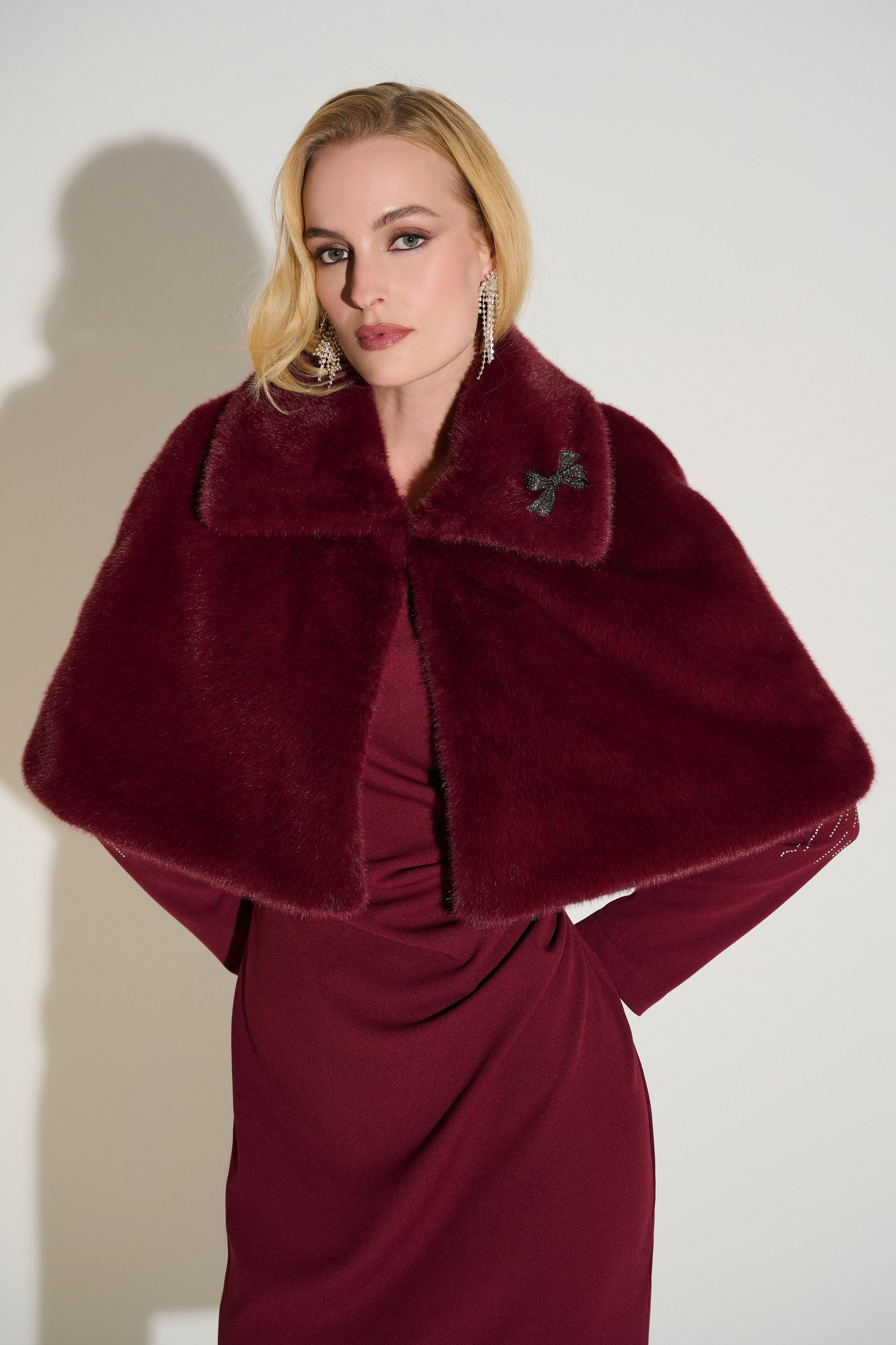 Joseph Ribkoff Faux Fur Cape with Crystal Brooch Style 253749