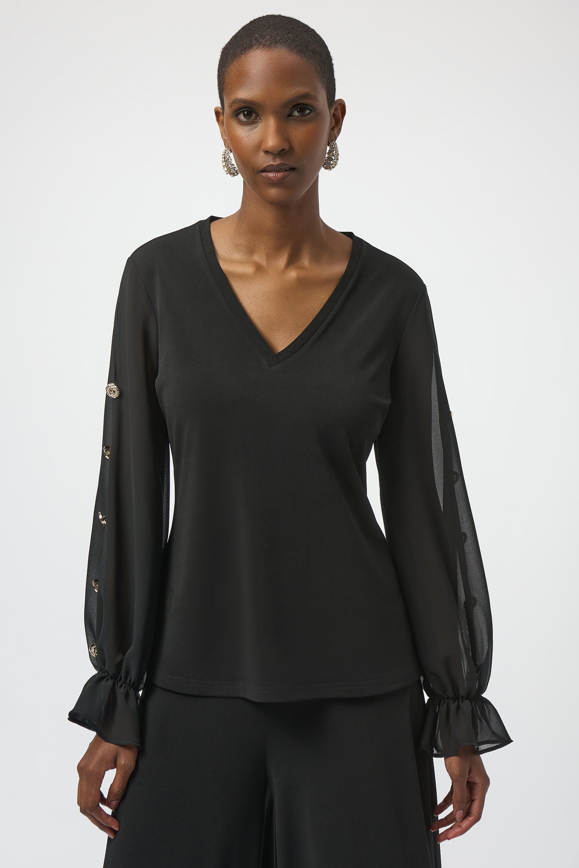 Joseph Ribkoff Moss Crepe and Chiffon Fitted Top Style 254093