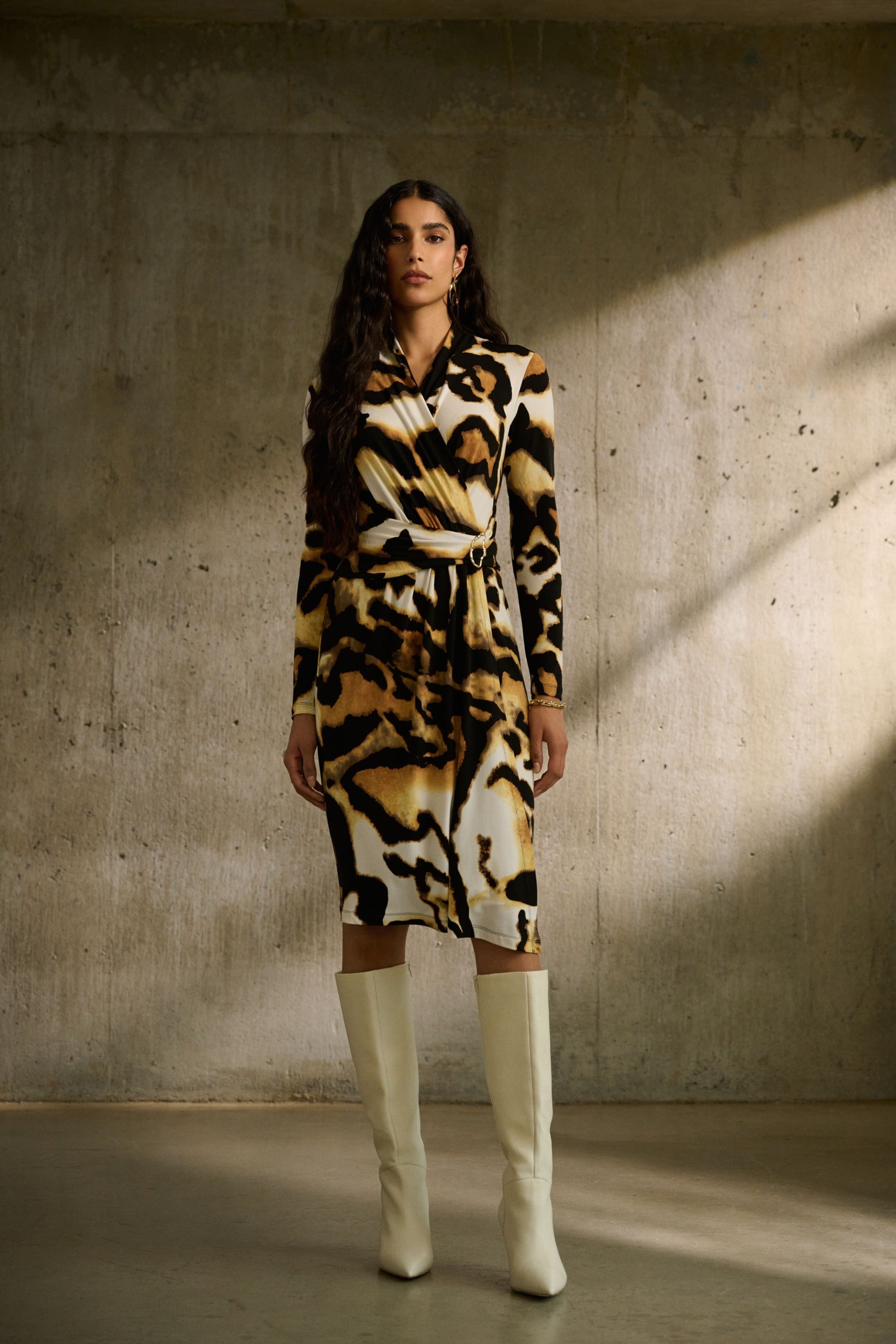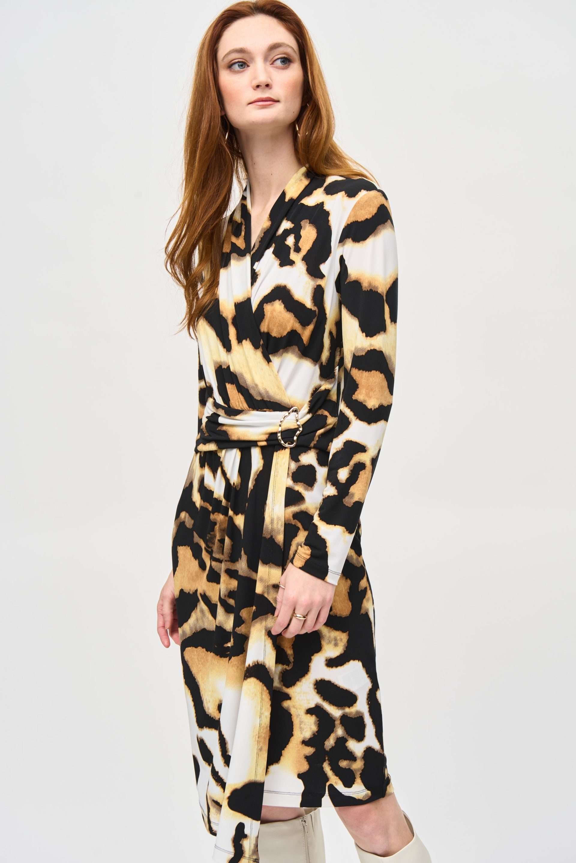 Joseph Ribkoff Off-White/Multi Animal Print Wrap Dress Style 243143