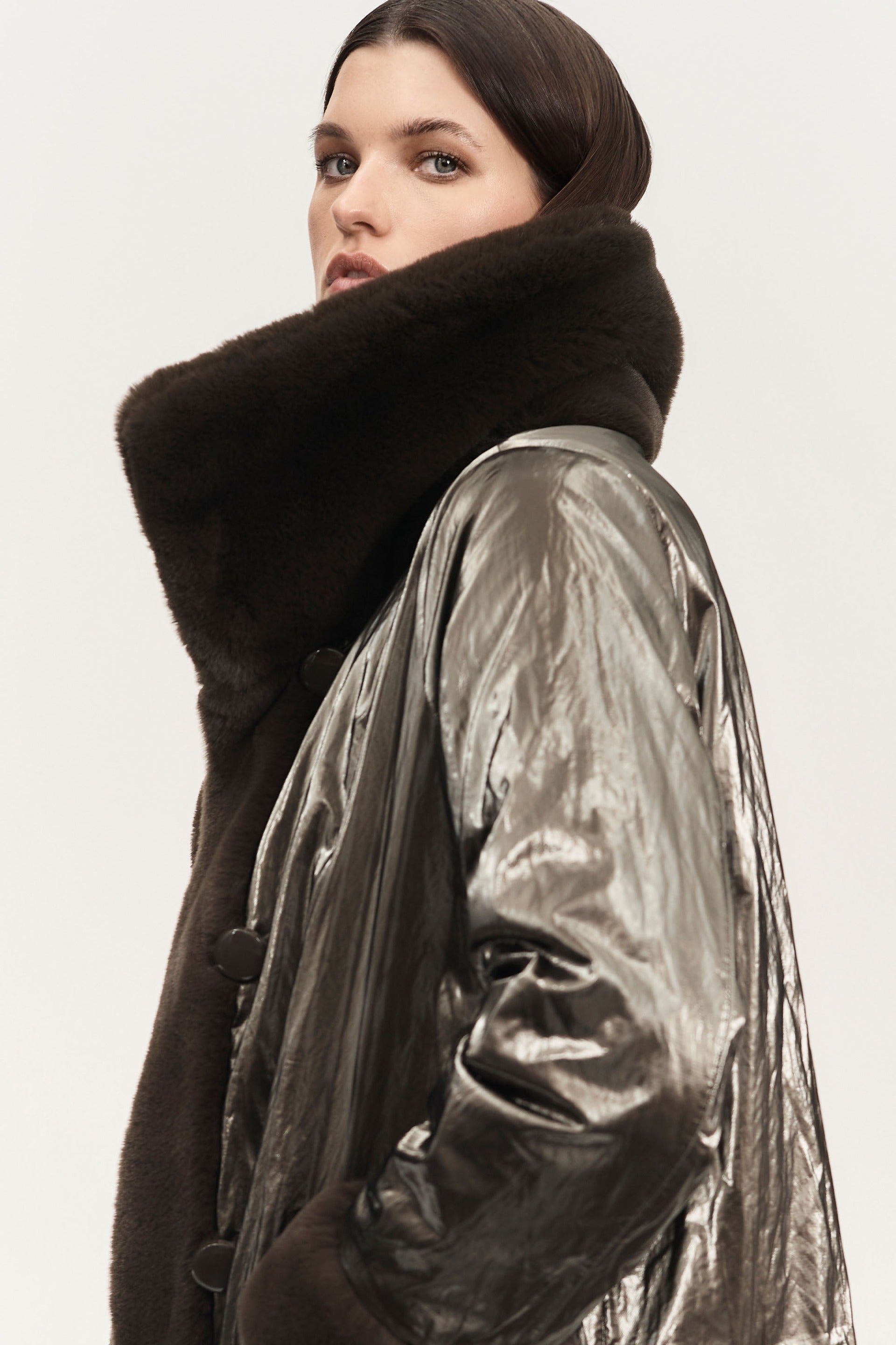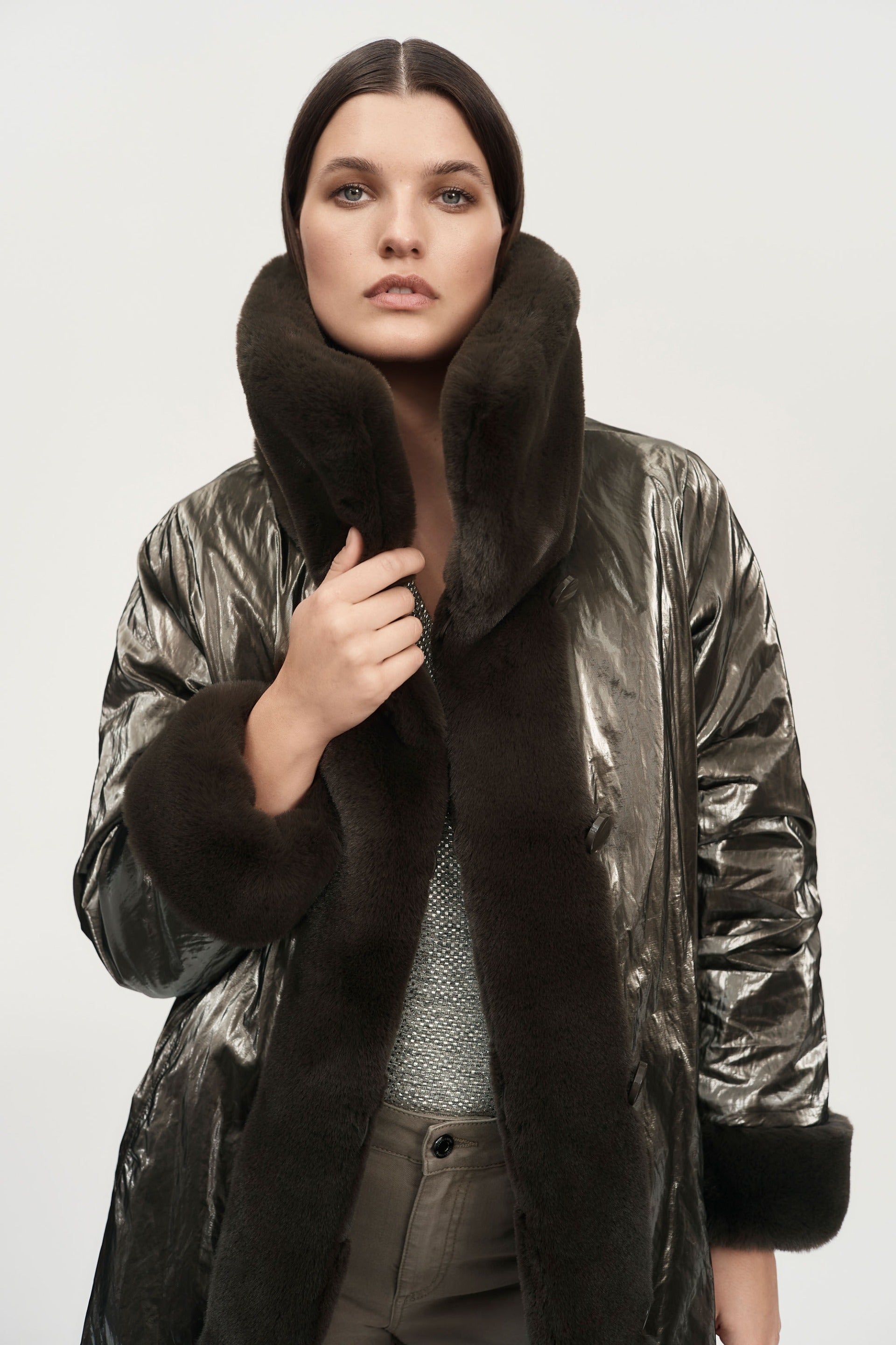 Joseph Ribkoff Taupe Reversible Faux Fur Coat Style 243904