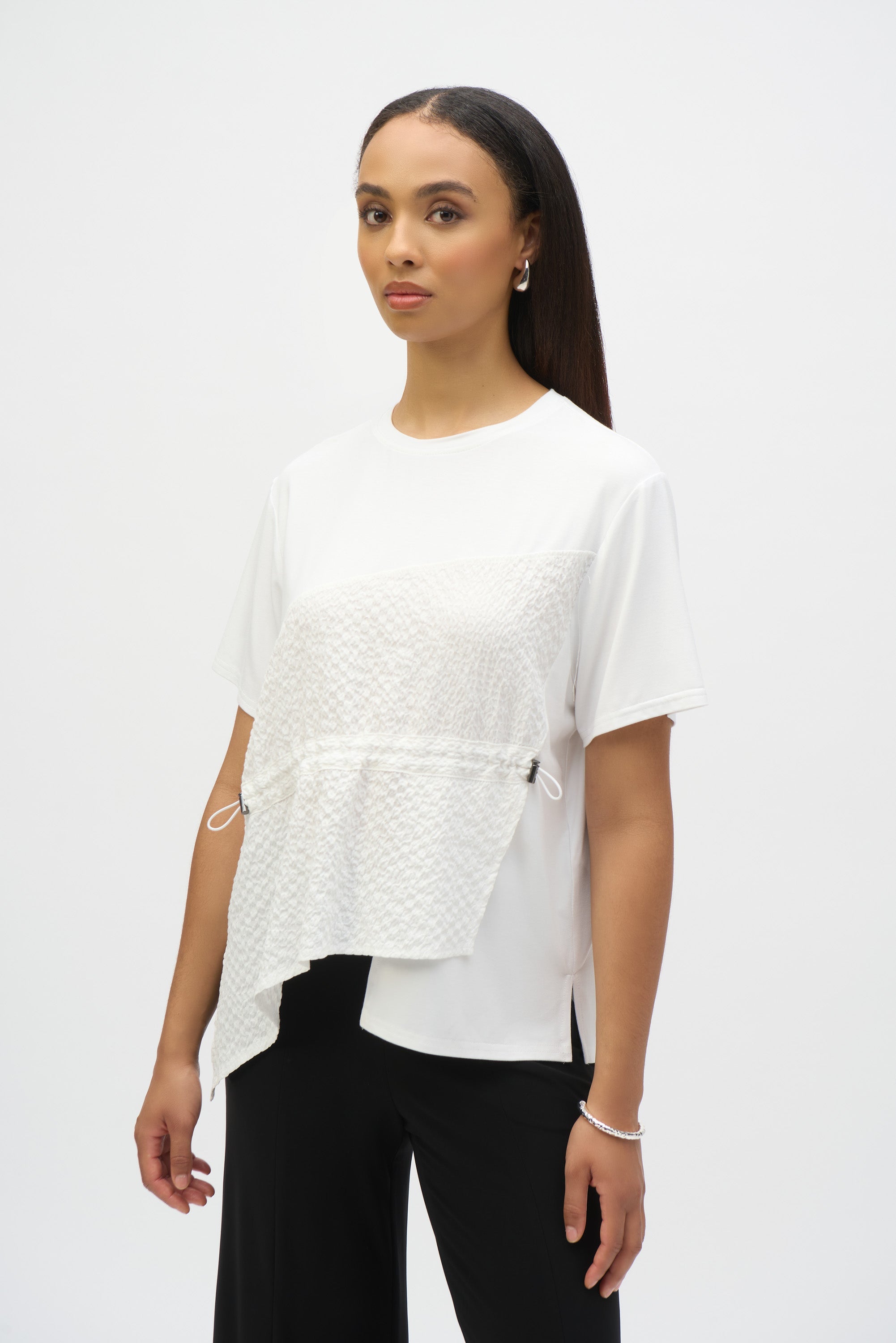 Joseph Ribkoff Vanilla Jersey And Seersucker Asymmetrical Top Style 252117