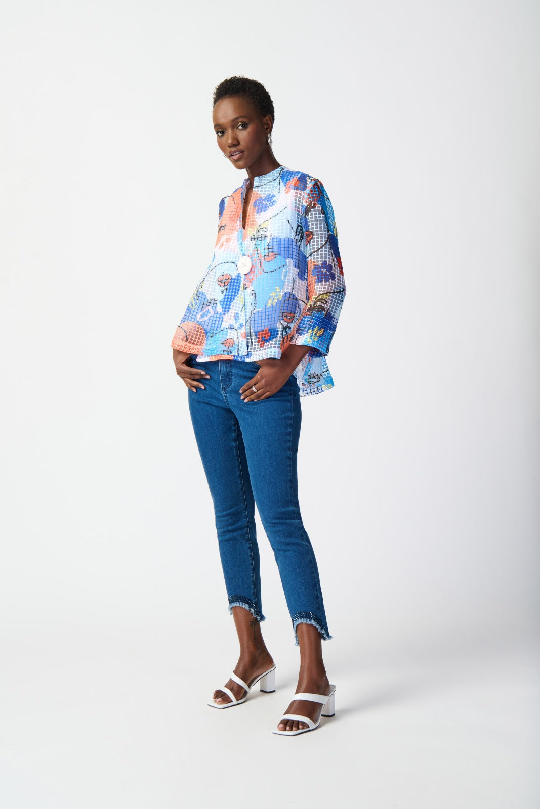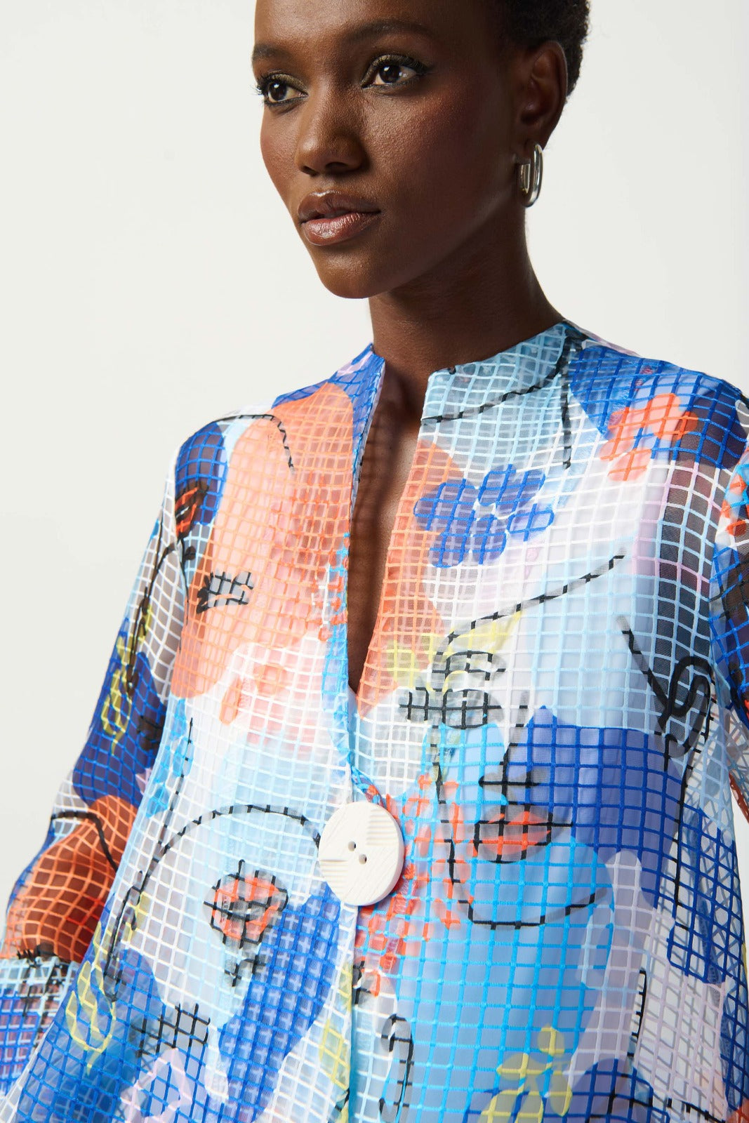 Joseph Ribkoff Vanilla/Multi Face Print Organza Swing Jacket Style 241191
