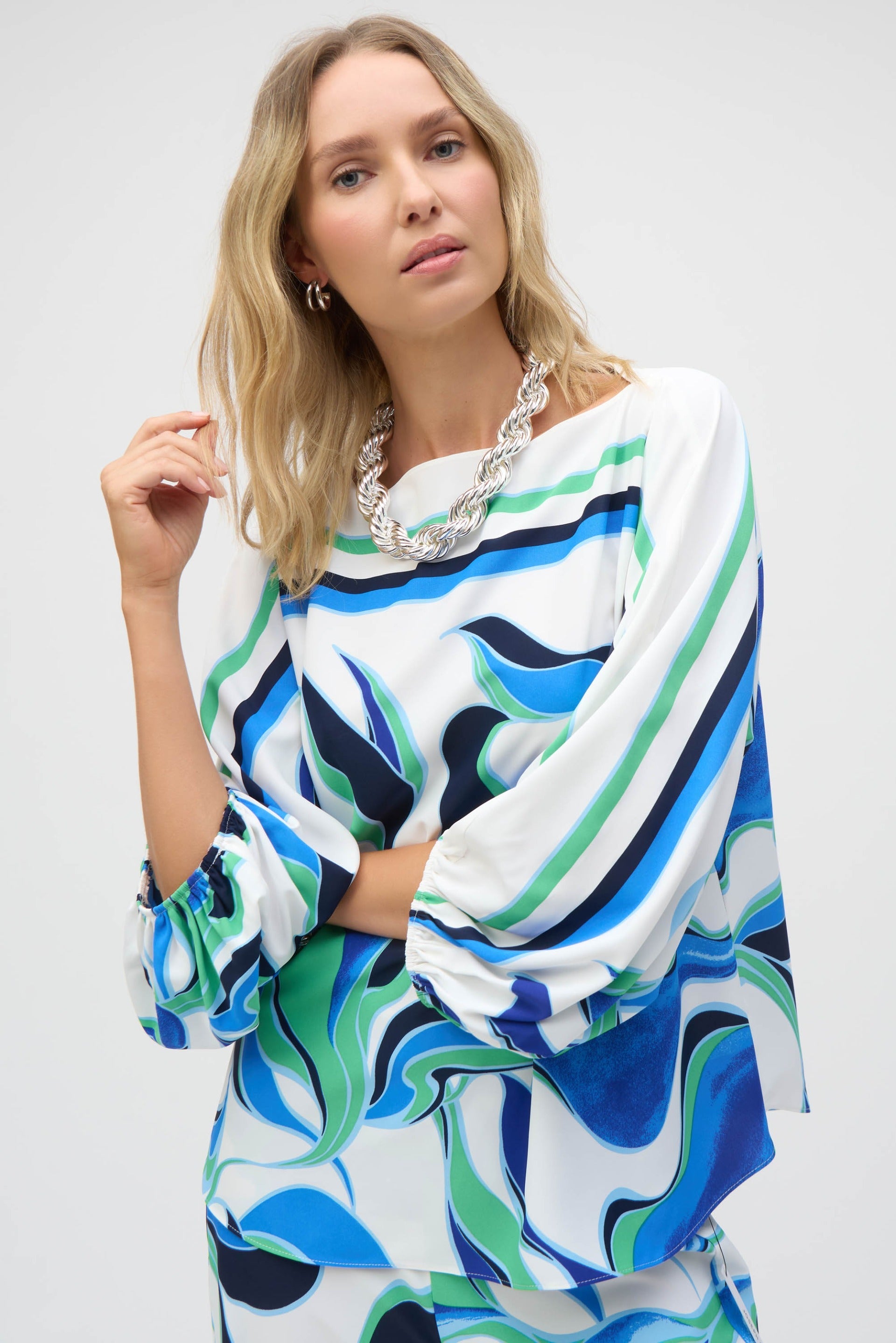 Joseph Ribkoff Vanilla/Multi Woven Abstract Print Boxy Top Style 252085