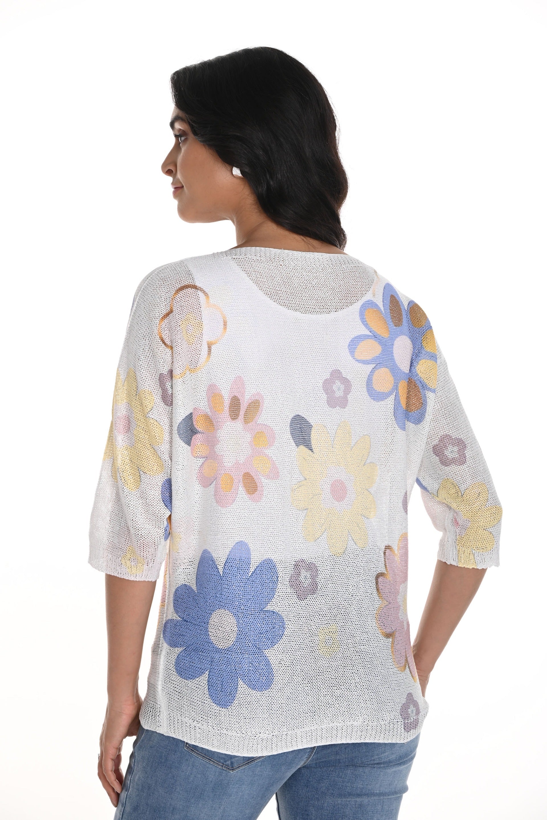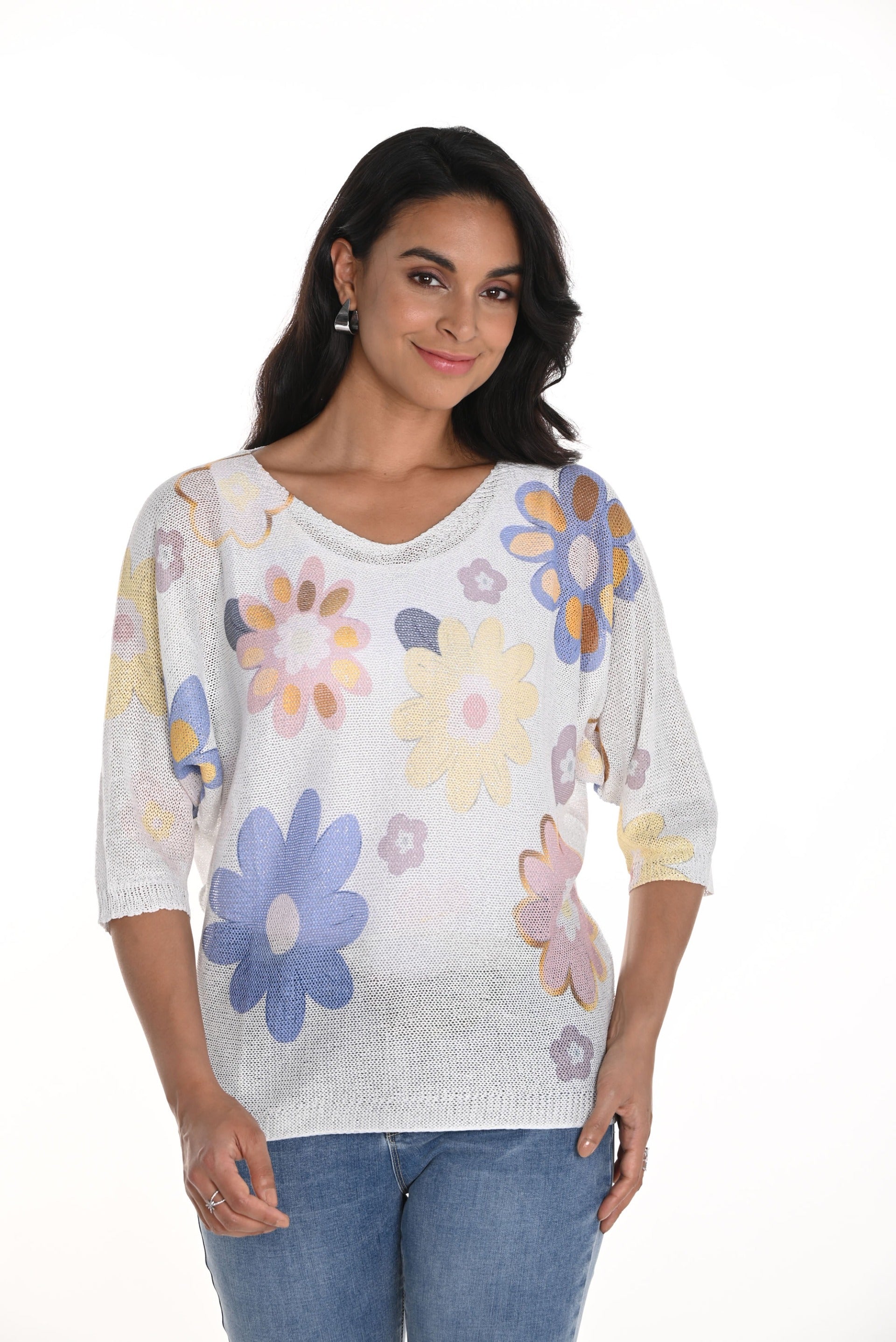 Frank Lyman Off-White/Multi Floral Print Knit Top Style 256795U