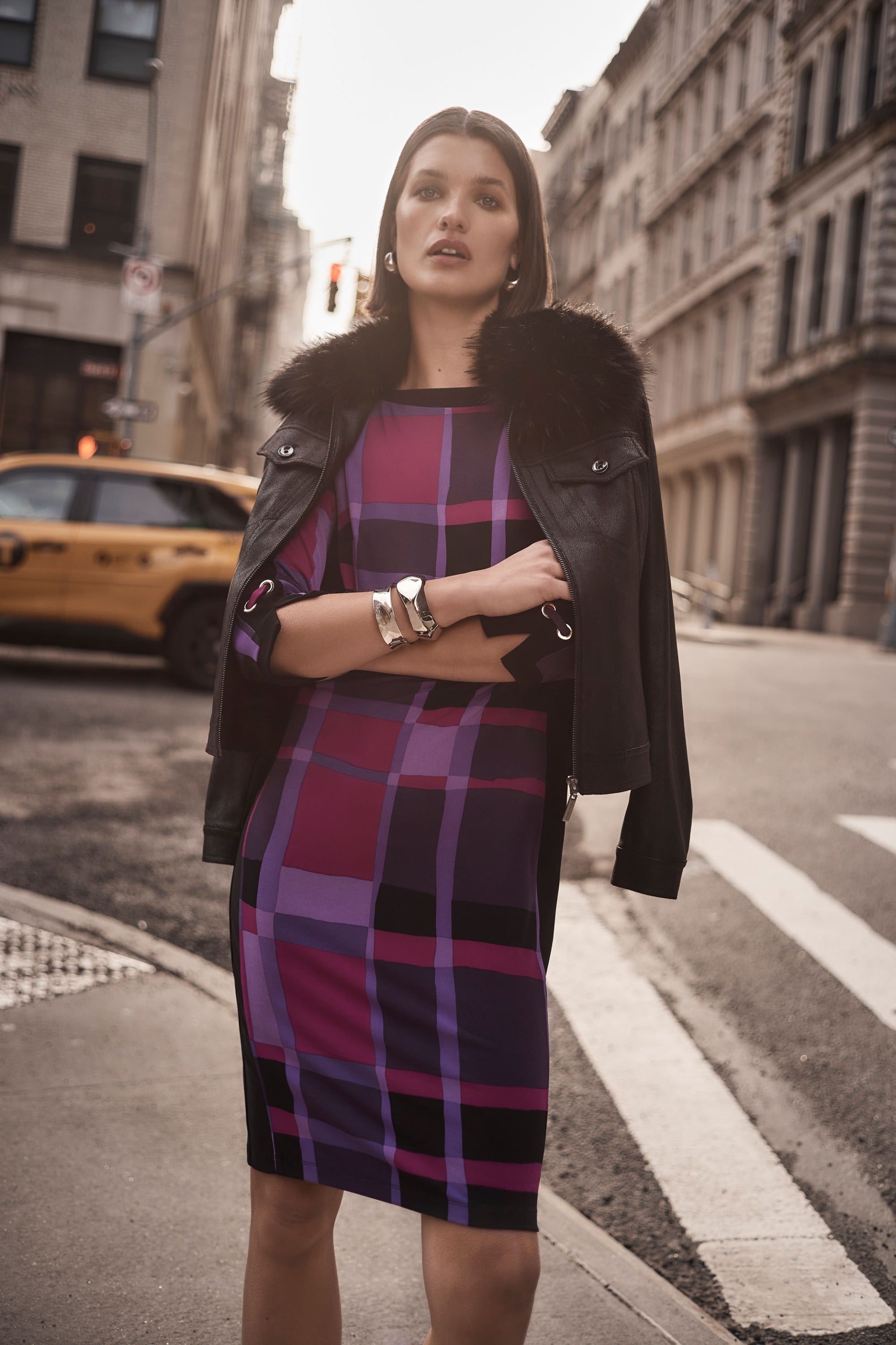 Joseph Ribkoff Black Faux Fur Collar Suede Jacket Style 243907