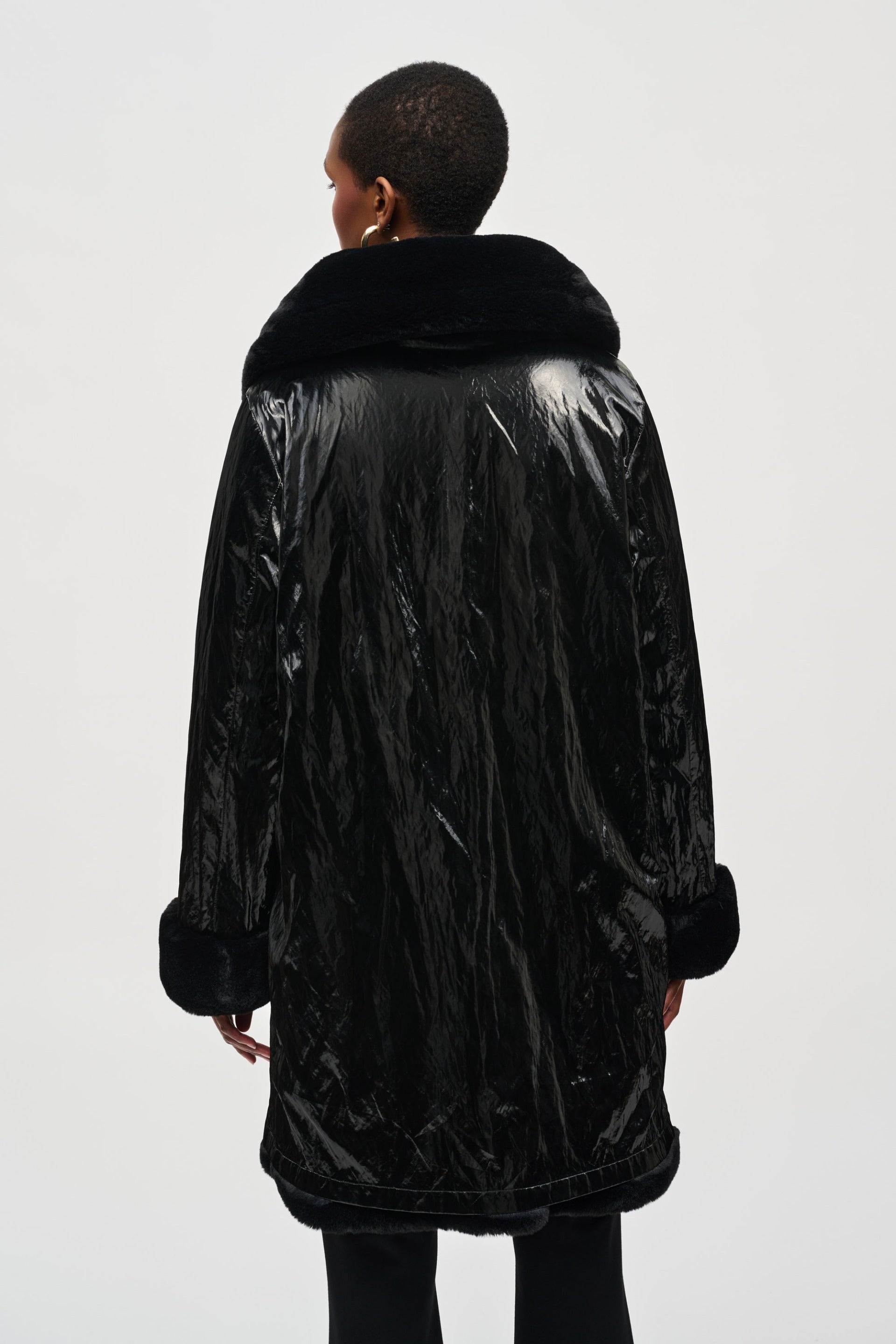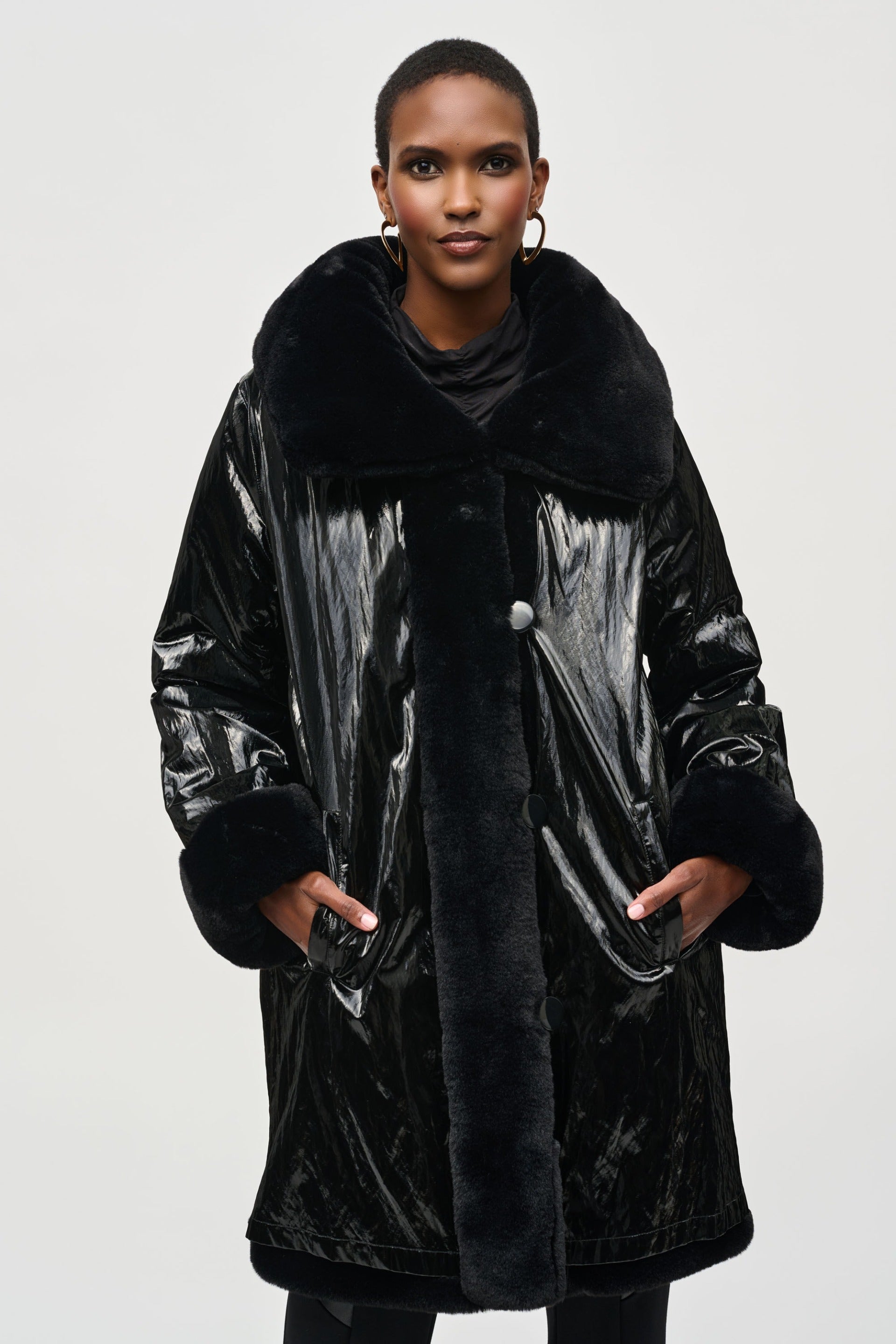Joseph Ribkoff Black Reversible Faux Fur Coat Style 243904