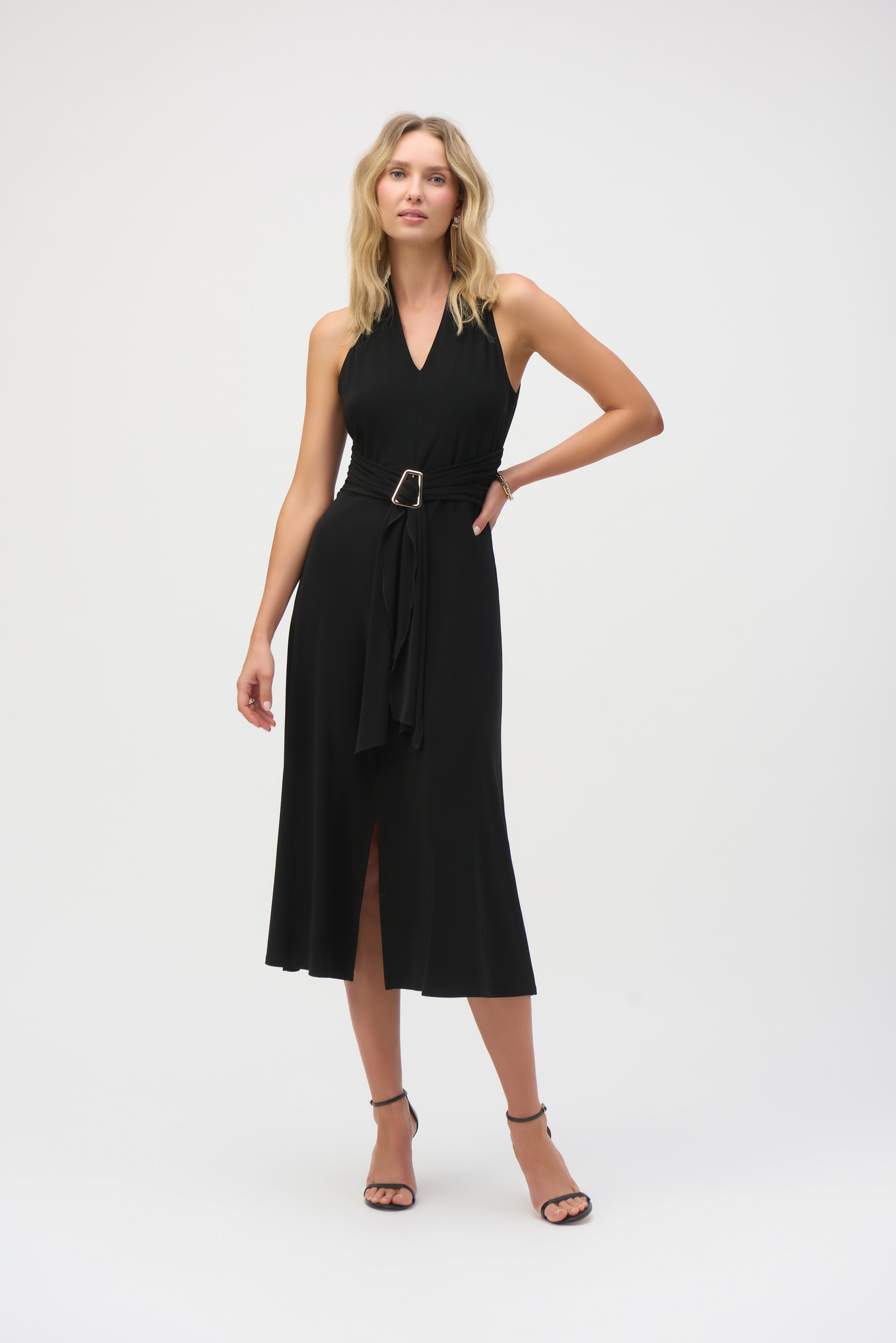 Joseph Ribkoff Black Silky Knit Fit and Flare Dress Style 252091