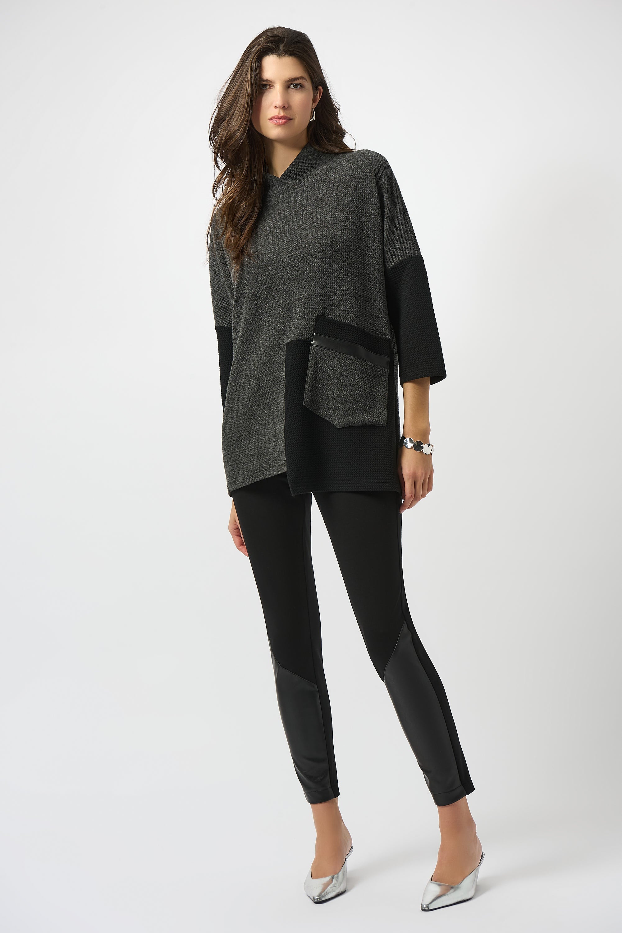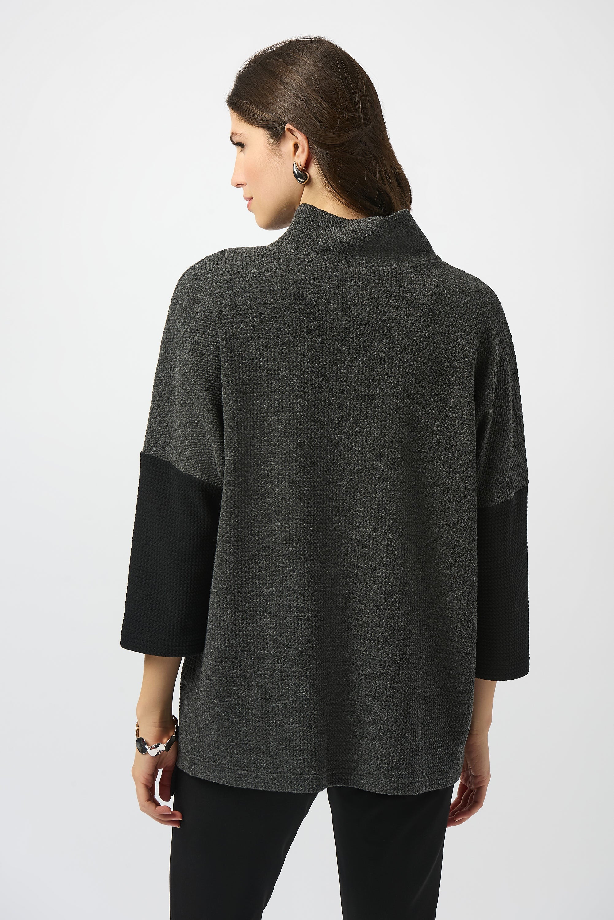 Joseph Ribkoff Grey/Black Textured Knit Color Block Boxy Top Style 253083
