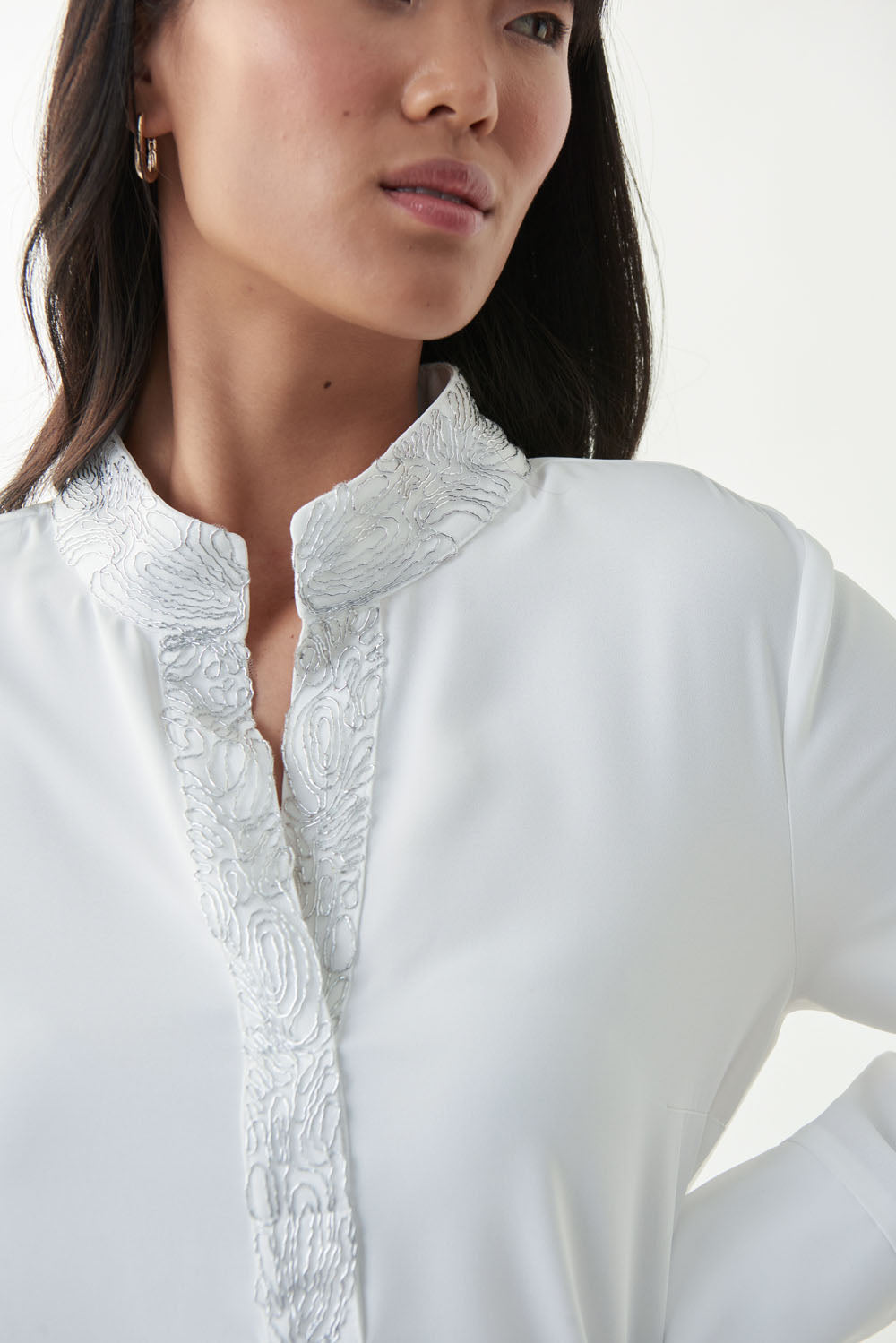 Joseph Ribkoff Vanilla Embroidered Blouse Style 221119