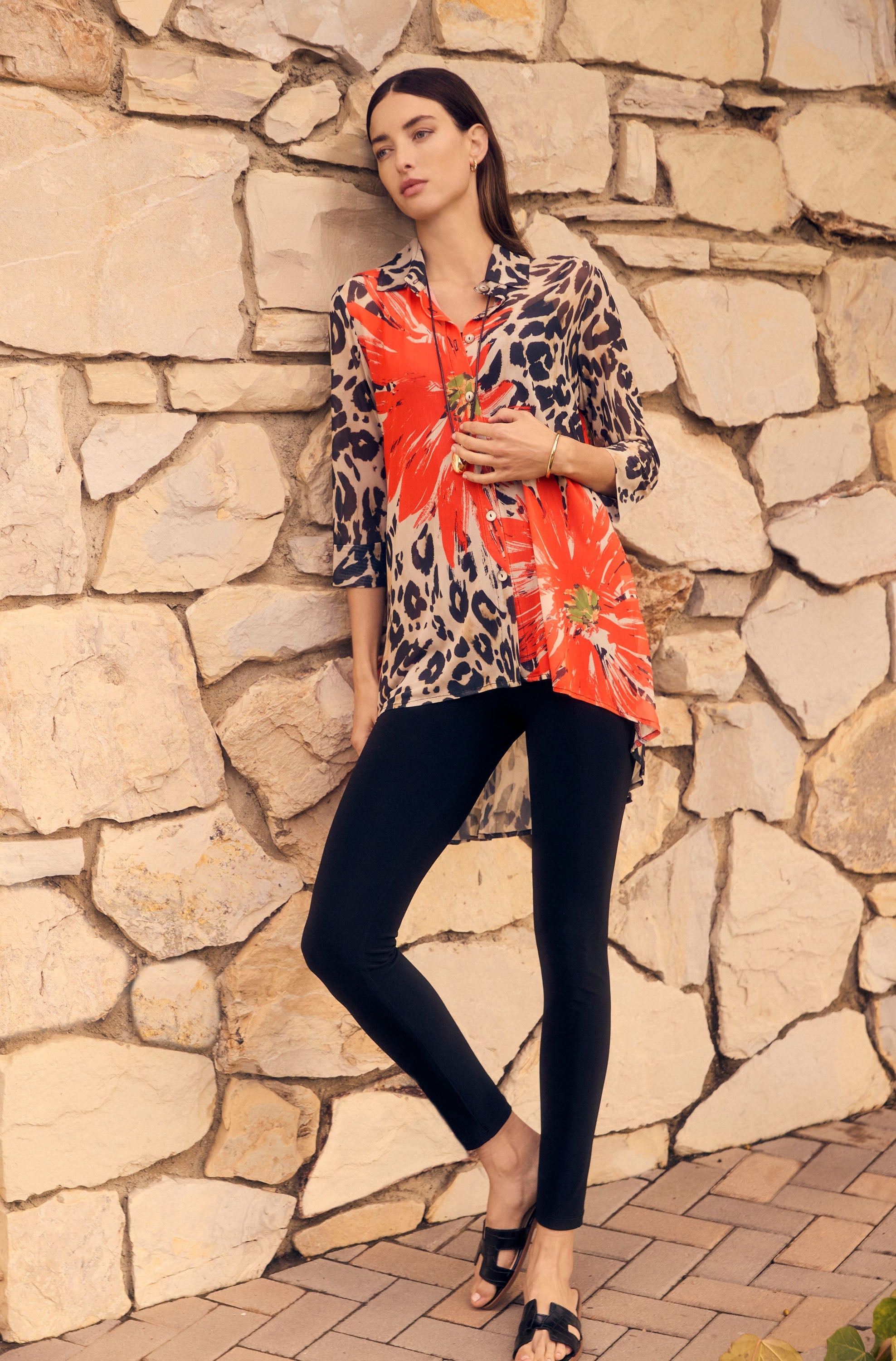 Frank Lyman Beige/Orange High-Low Blouse Style 251401