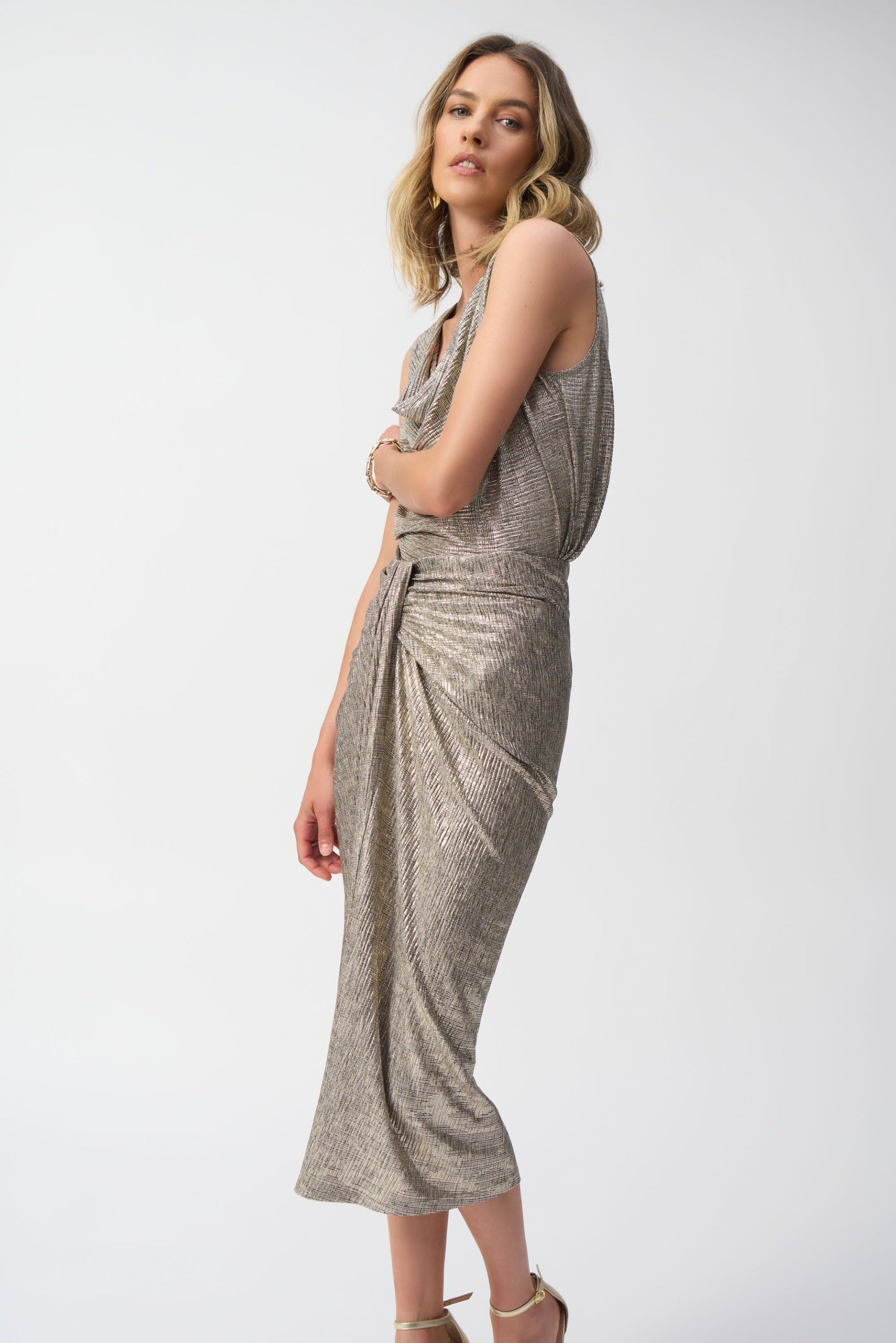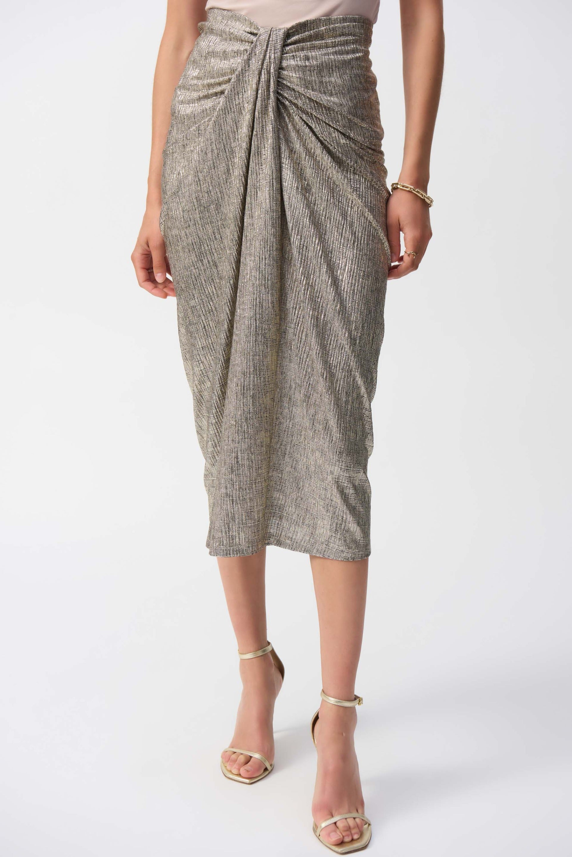 Joseph Ribkoff Beige/Gold Foiled Draped Pencil Skirt Style 251283